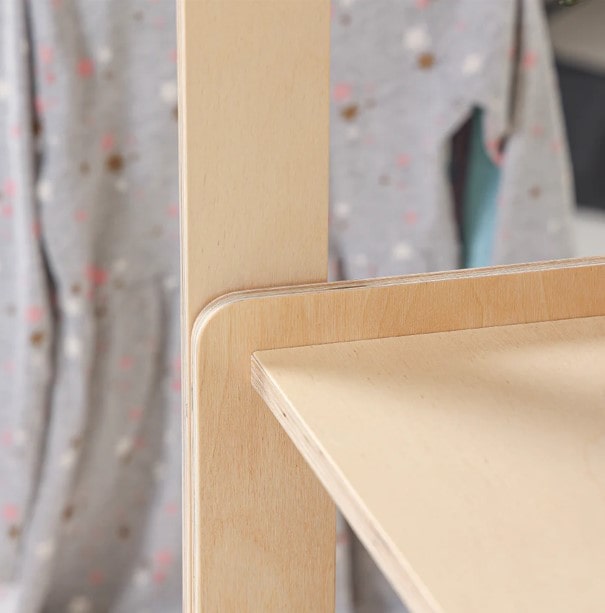 Perfekte Lösung für städtische Familien, die begrenzten Raum optimal nutzen. Europäische Herstellung aus verantwortungsvoll gewonnenem baltischem Birkenholz verwandelt ungenutzte Ecken in authentische Montessori-Lernbereiche.