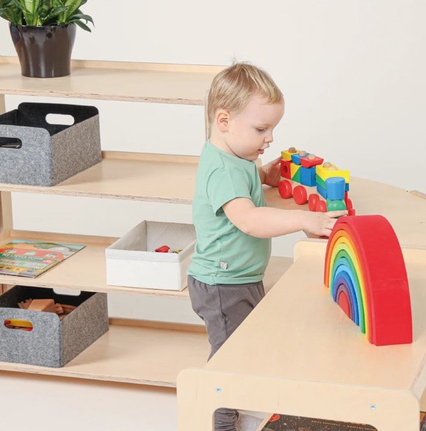 Regale sind ein wichtiges Element in der kindlichen Entwicklung, da sie die Autonomie fördern.