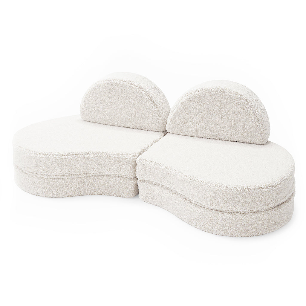 Create a cocoon of softness with the modular Play sofa Lunato in Bearly plush. Its 6 ultra-comfortable modules with rounded curves transform the space into a premium play area where your child develops autonomy and creativity.