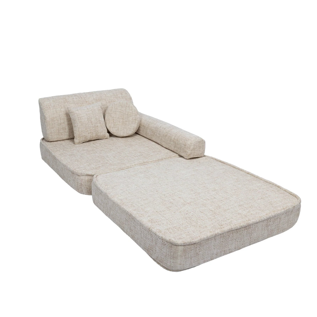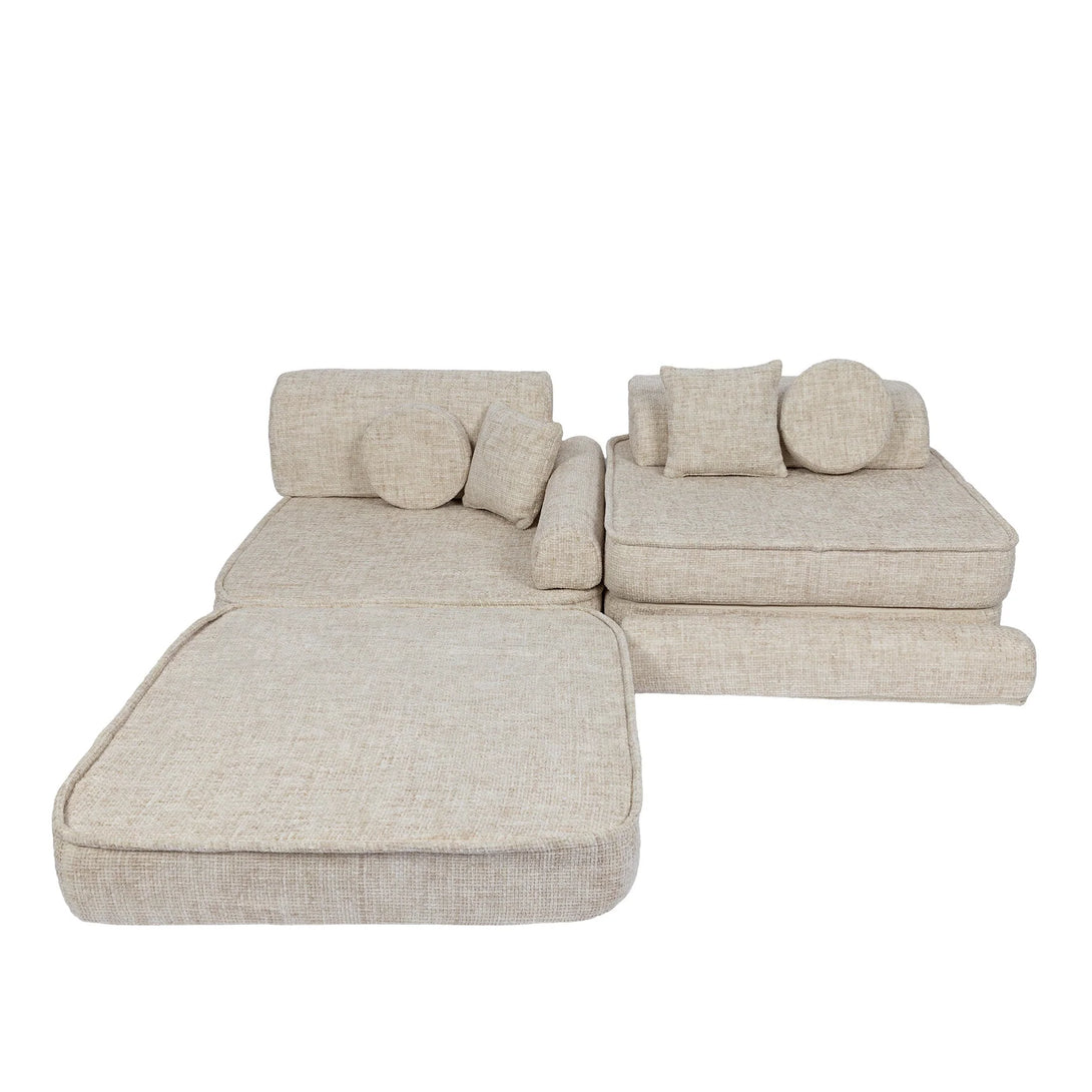 With its modules in various shapes and padded with foam, the motor skills sofa is ideal for creating a play area at home that our children can modify as they wish.