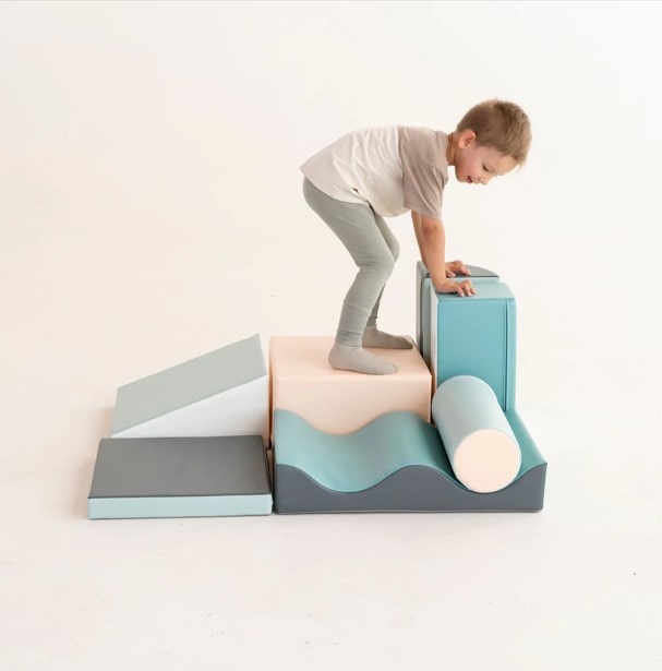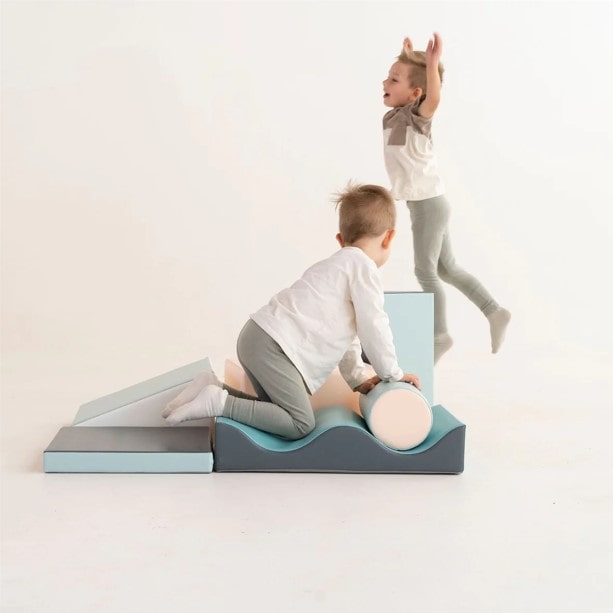 Stimulate curiosity and motor development with this 7-piece faux leather motor skills course. Ultra-light and stackable modules create infinite configurations to develop balance, coordination, and creativity from 12 months to 8 years.