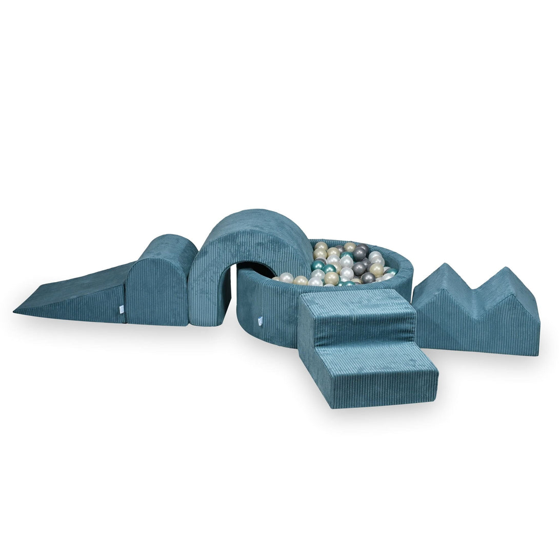 Foam playground 5 pieces with ball pit 90x30cm in Corduroy Tobias - Blue | Balls of choice