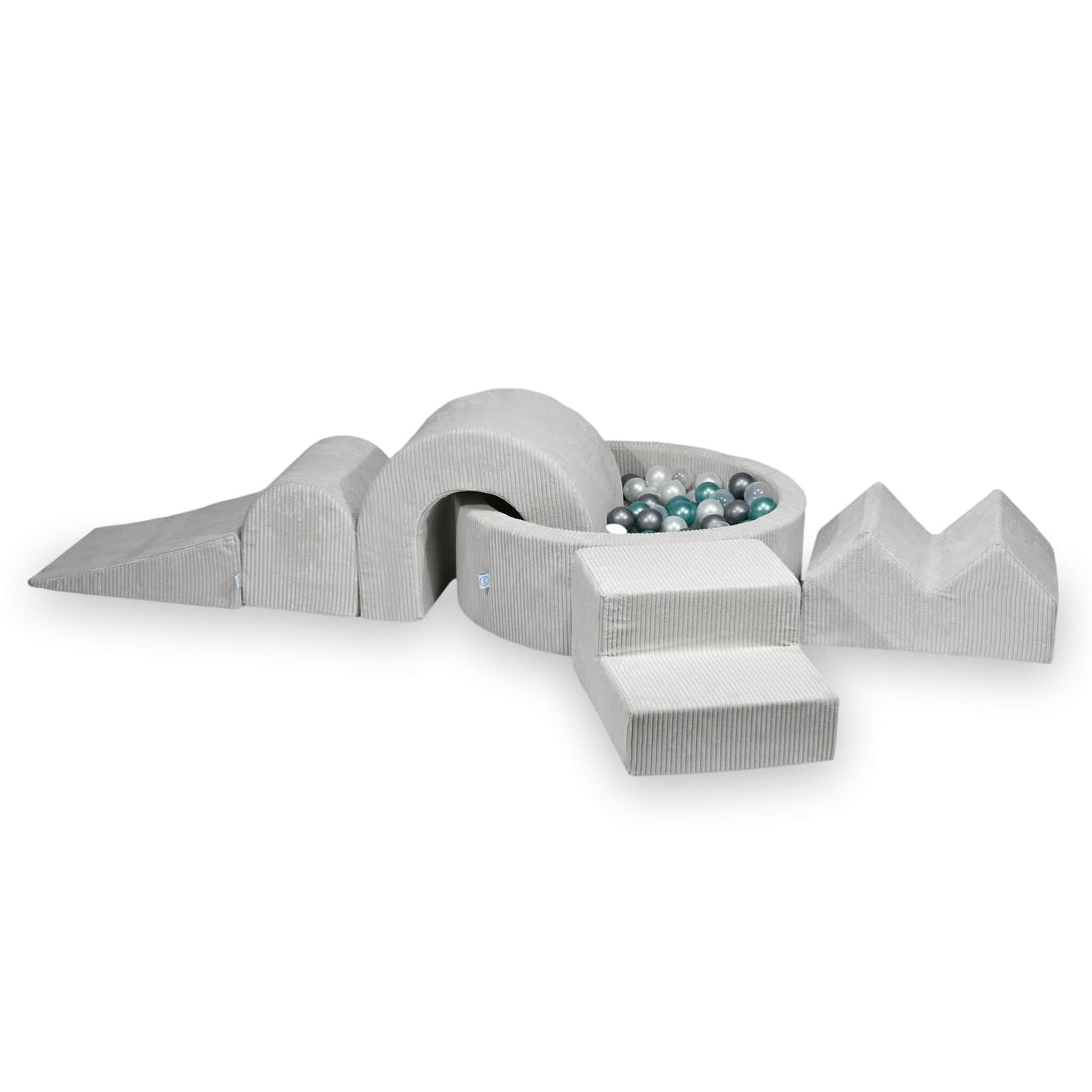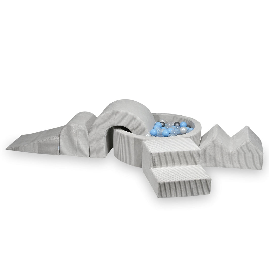 Foam playground 5 pieces with ball pit 90x30cm in Corduroy Tobias - Gray | Balls of choice