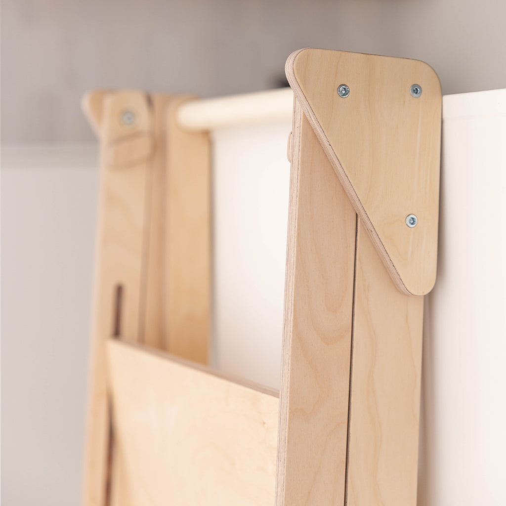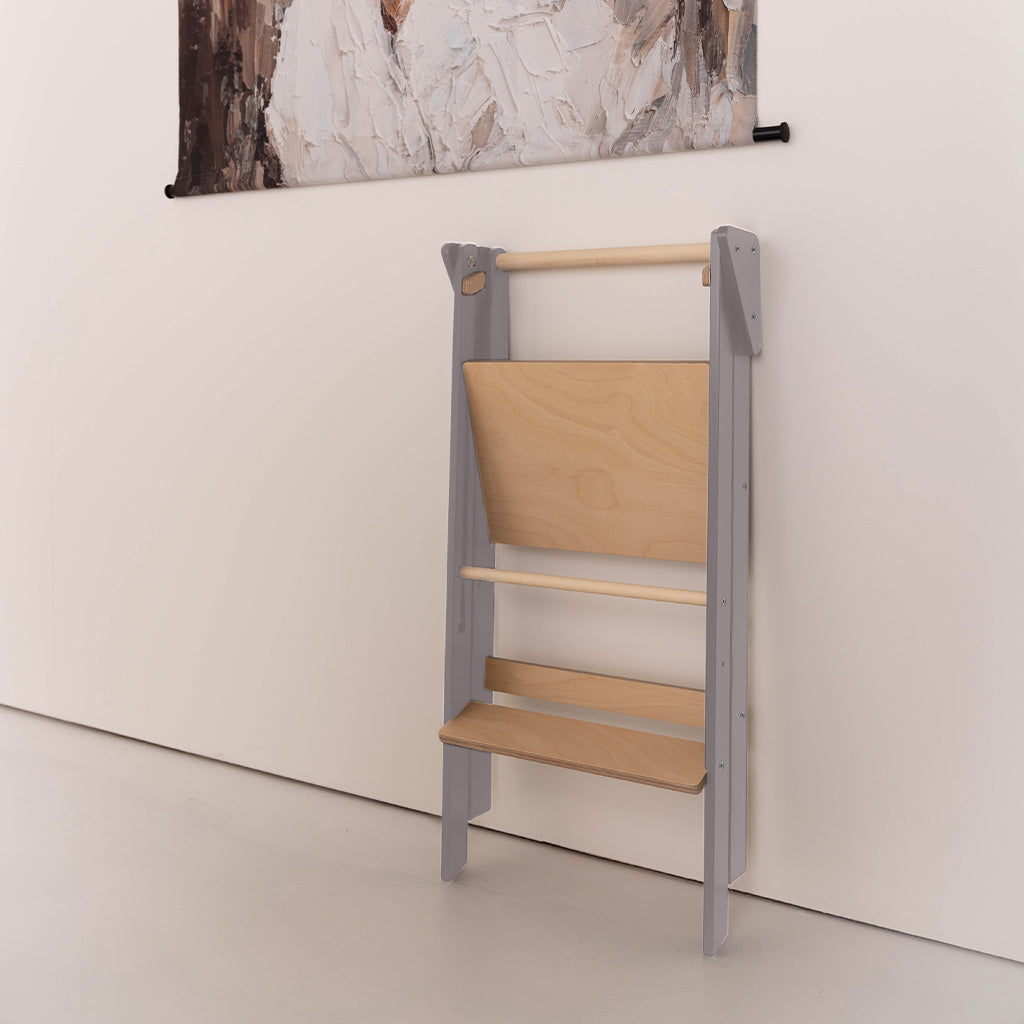 Large and solid, made from natural materials, this learning tower is designed so that our children can test and develop their abilities in complete safety.