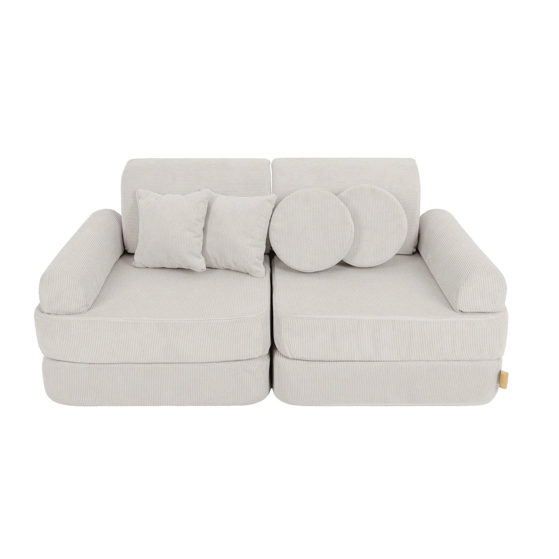 Desarrolla la autonomía motriz con el sofá modular Loke+ en Corduroy Slimcord. Sus 10 módulos con finas costillas elegantes ofrecen un formato intermedio accesible en la calidad LOOVE.