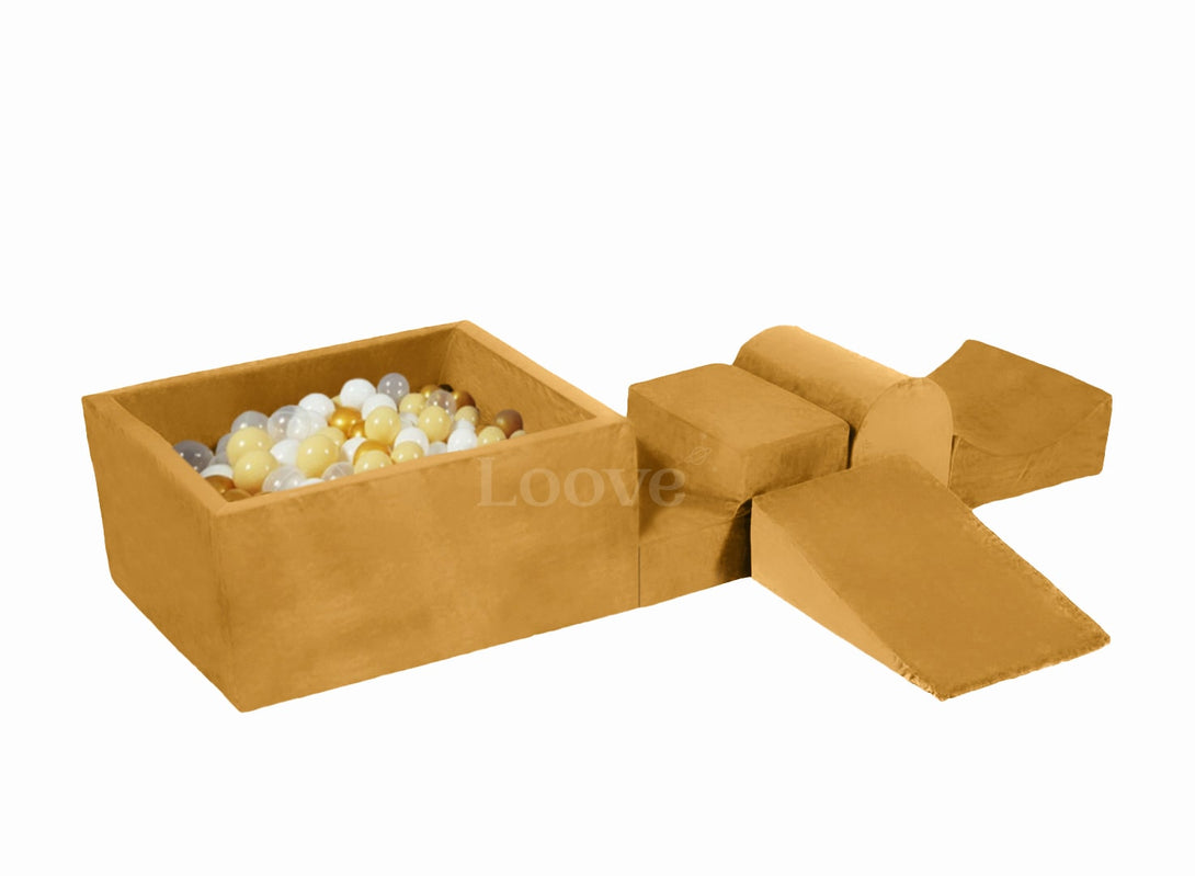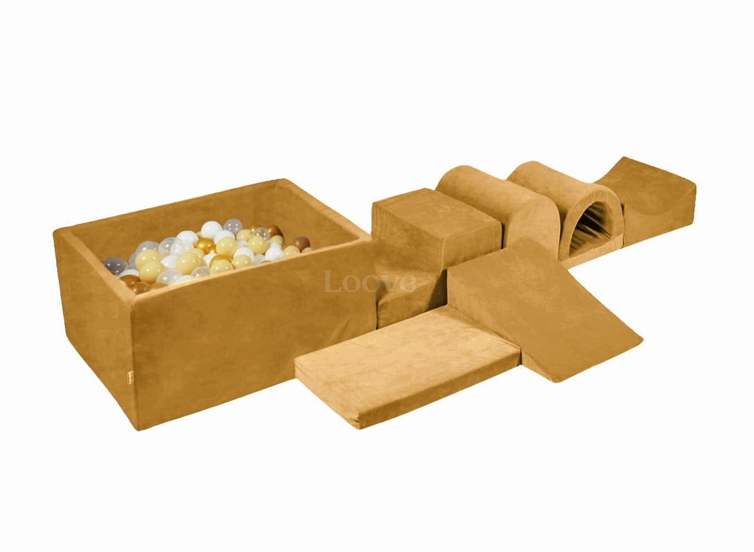 Parcours de motricité 3, 4, 5 ou 6 pièces avec piscine à balles carrée en velours - Caramel • LOOVE