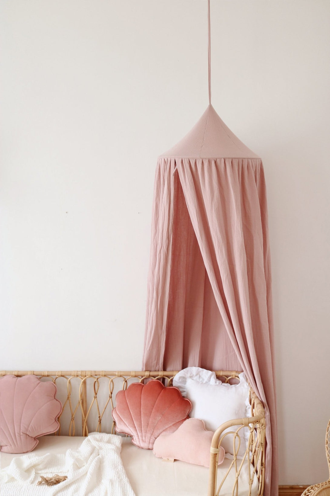 Cielo del letto / Baldacchino in cotone tinta unita, Rosa layette