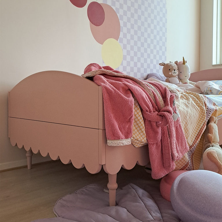 Le lit Babushka s’inscrit dans une logique évolutive inspirée des principes de Maria Montessori : avec ses barreaux amovibles et sommier ajustable, il accompagne chaque étape du développement moteur et émotionnel de l’enfant, favorisant le sentiment de sécurité tout en l’invitant progressivement à plus d’indépendance.