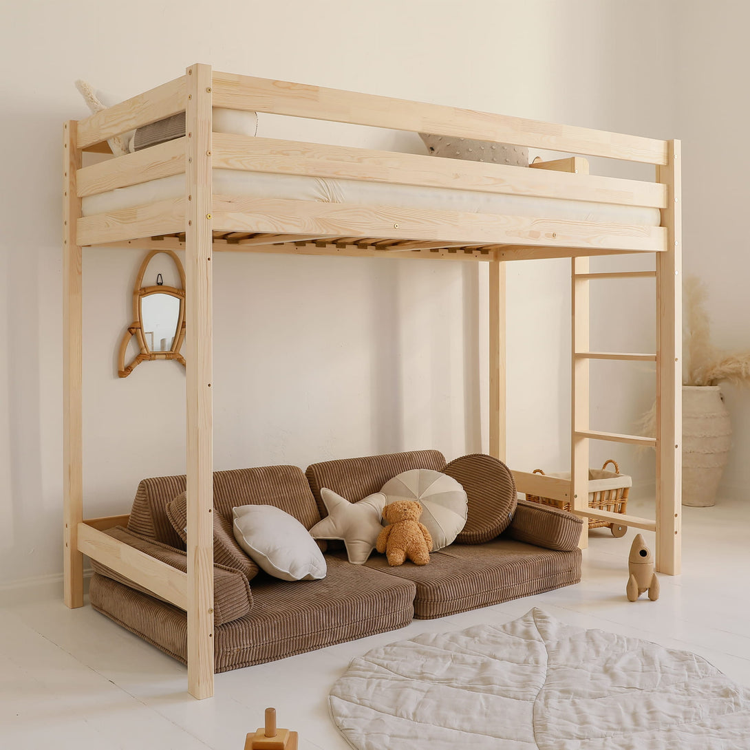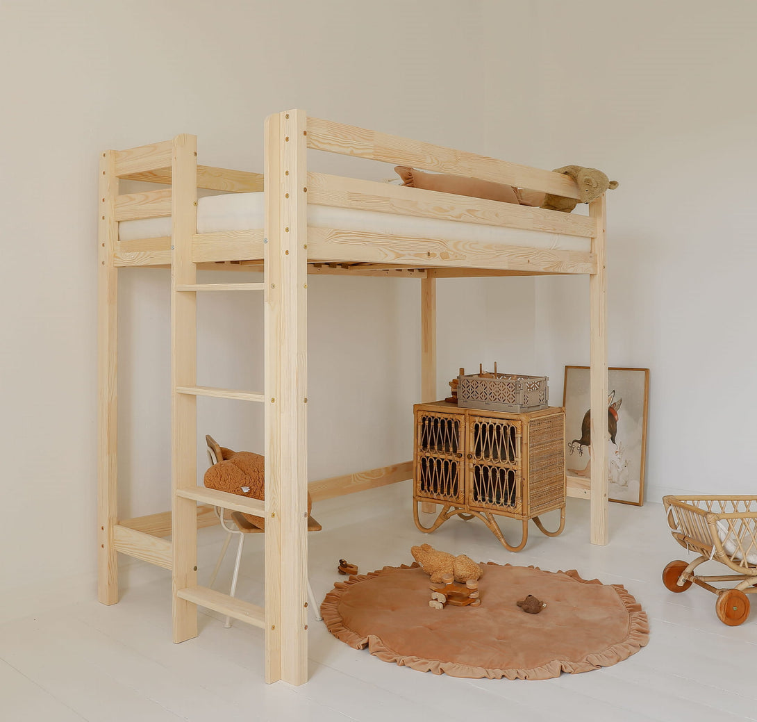 Il letto a soppalco è molto più di un letto — è un regno sospeso e fantastico dove nascono i sogni. I bambini ne sono i sovrani benevoli, che vegliano sul loro dominio dalle altezze della loro cittadella protettiva.