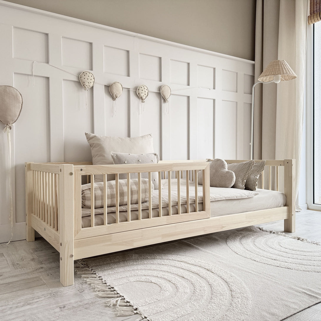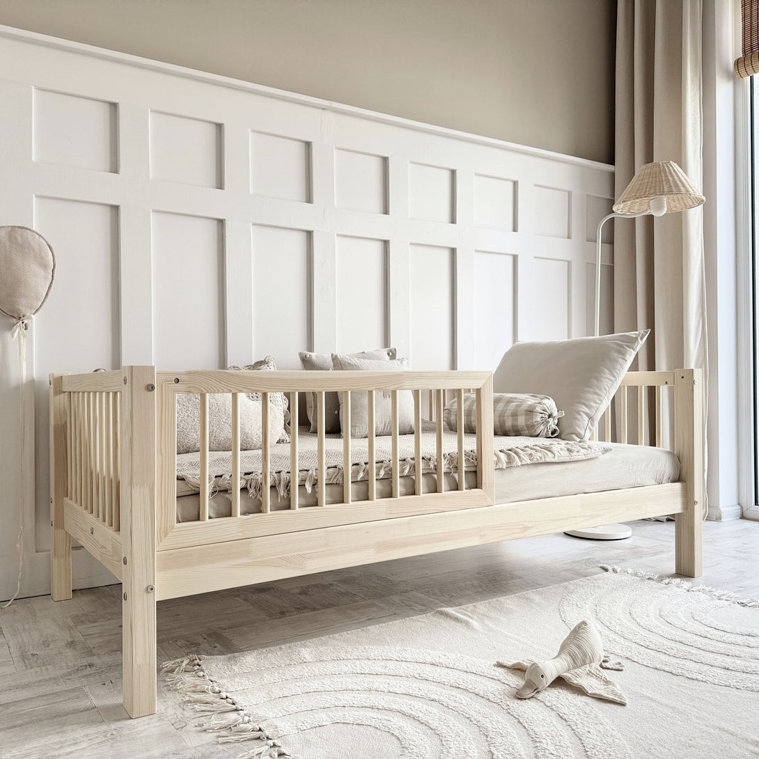 Con il suo ingresso centrale pratico, il letto Milas si adatta a tutte le età e a tutte le camere — per notti tranquille e una transizione dolce verso l'autonomia.