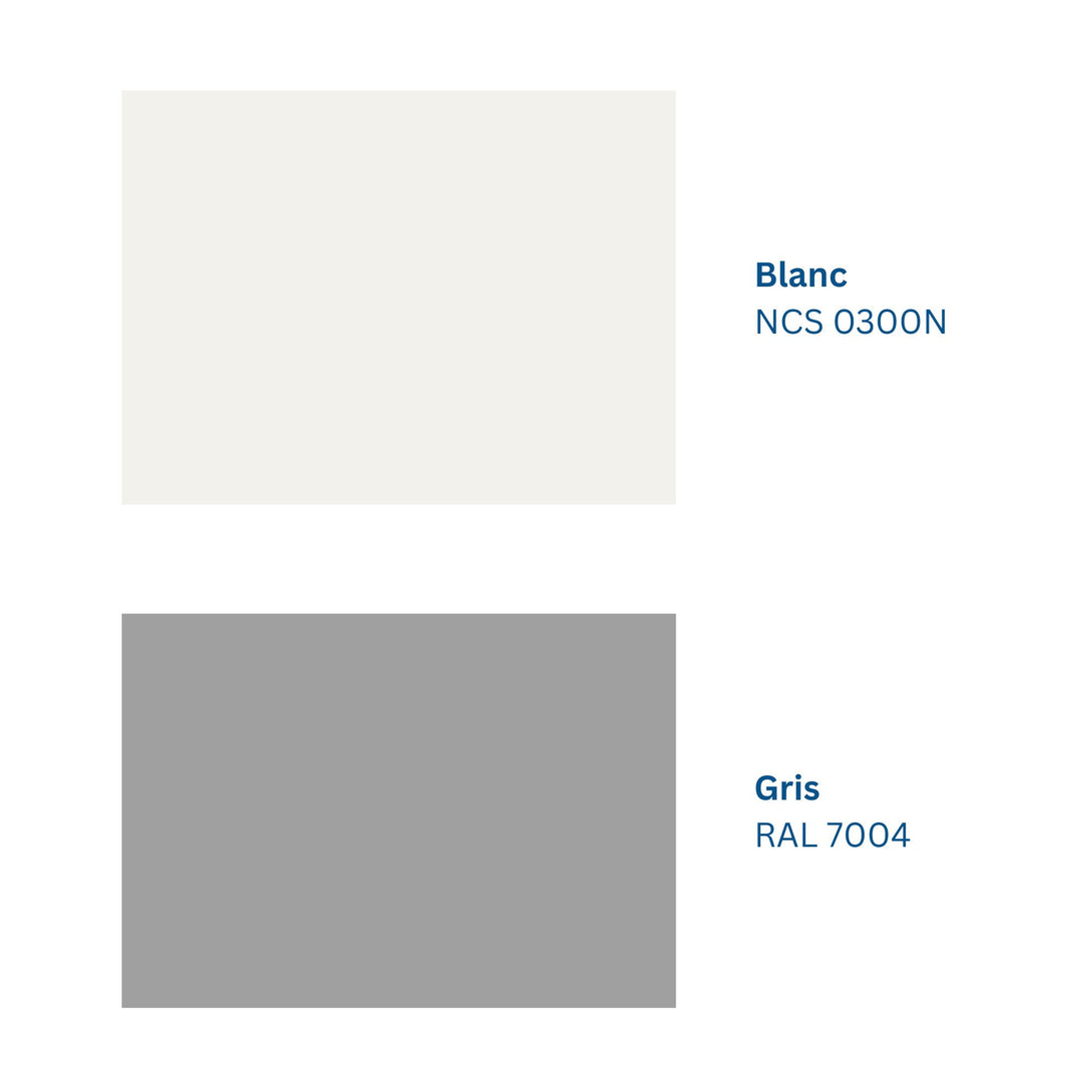 - Finition : Bois brut naturel (sans peinture ni vernis) ou peintures à l’eau blanches (NCS palette 0300N).