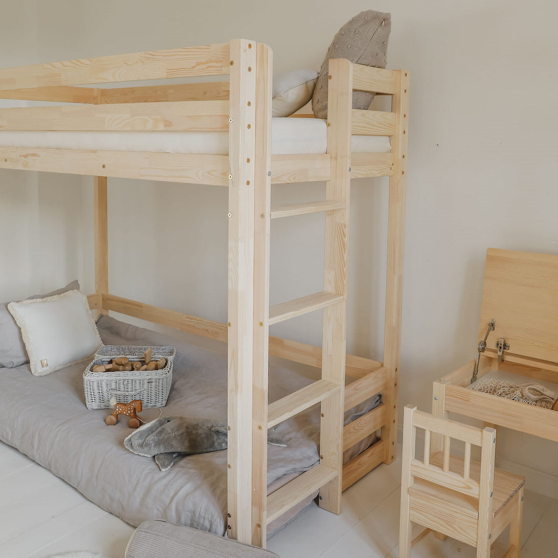 Il letto a castello è sia la soluzione ideale per i genitori per ottimizzare lo spazio nella stanza dei loro figli, sia per i bambini la promessa di avventure quotidiane. Perfetto per famiglie con più figli o stanze piccole, libera spazio a terra per più giochi, attività e momenti condivisi. I bambini adorano arrampicarsi sul letto superiore e crearsi un nido accogliente sotto.