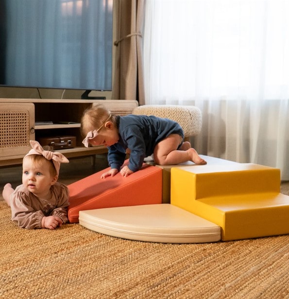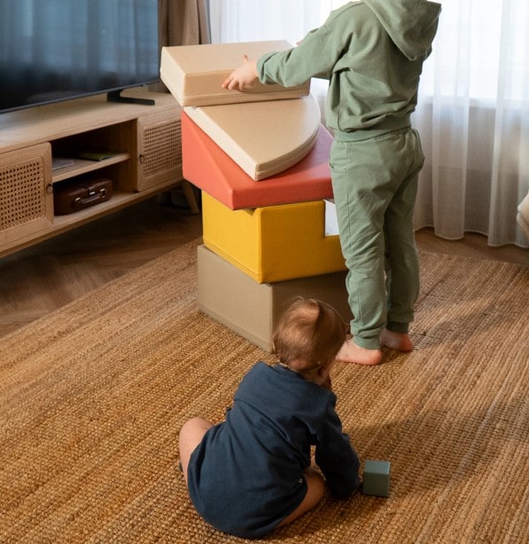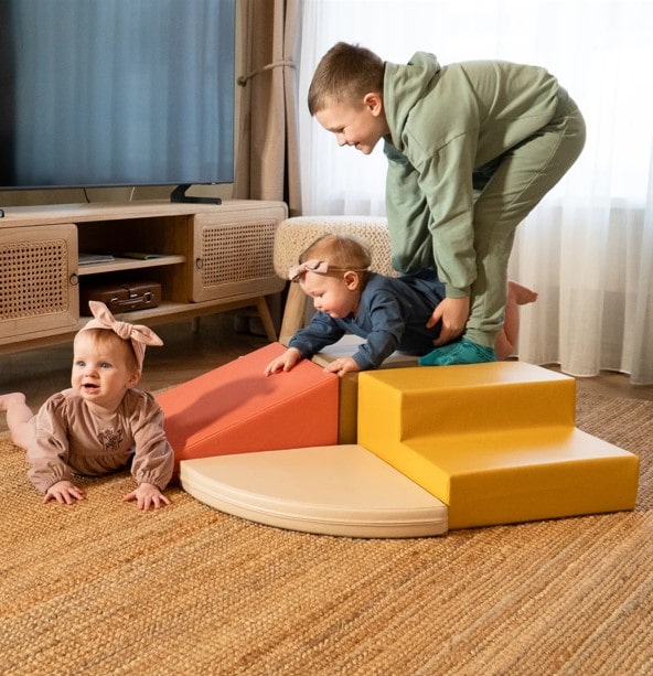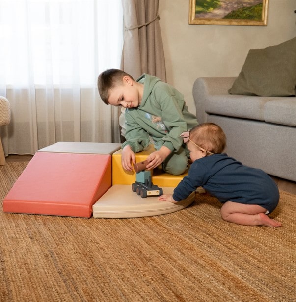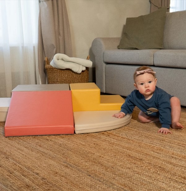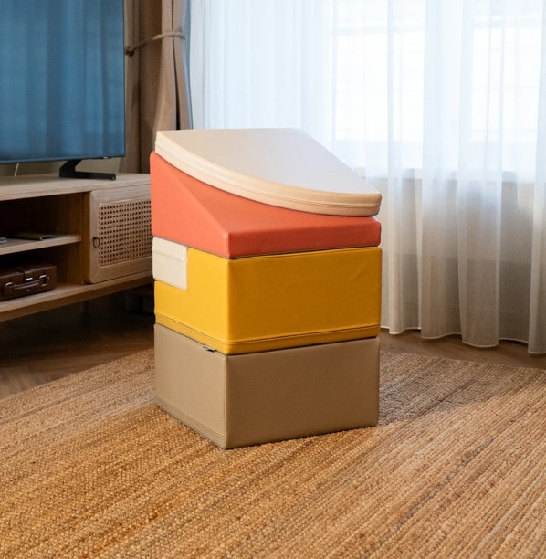 Costruzione in schiuma di alta qualità 100% riciclabile rivestita in similpelle resistente. Moduli ultra leggeri che facilitano la manipolazione autonoma, supporta fino a 100kg per momenti condivisi in famiglia. Sicurezza certificata CE senza sostanze nocive.