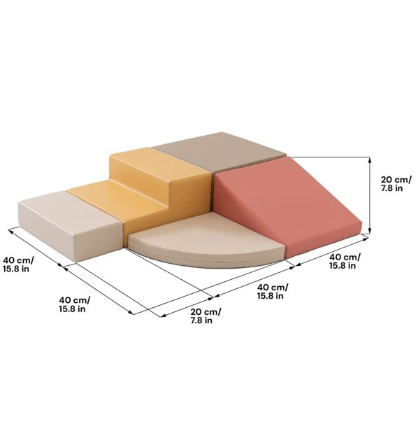 Sviluppa forza e coordinazione con questo percorso di motricità 5 pezzi in similpelle. Formato ottimizzato che combina moduli di arrampicata e equilibrio per stimolare la motricità globale, la creatività e la fiducia motoria da 12 mesi a 6 anni.