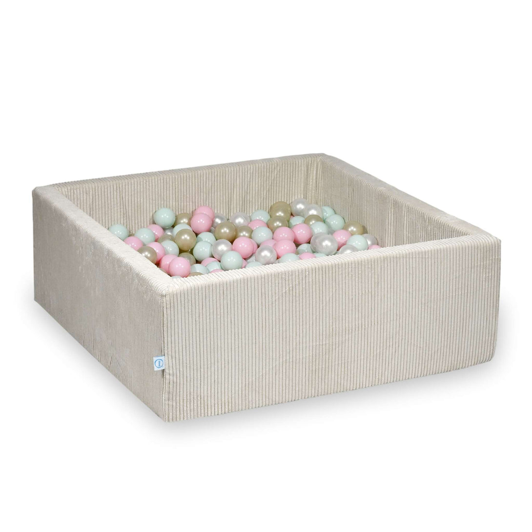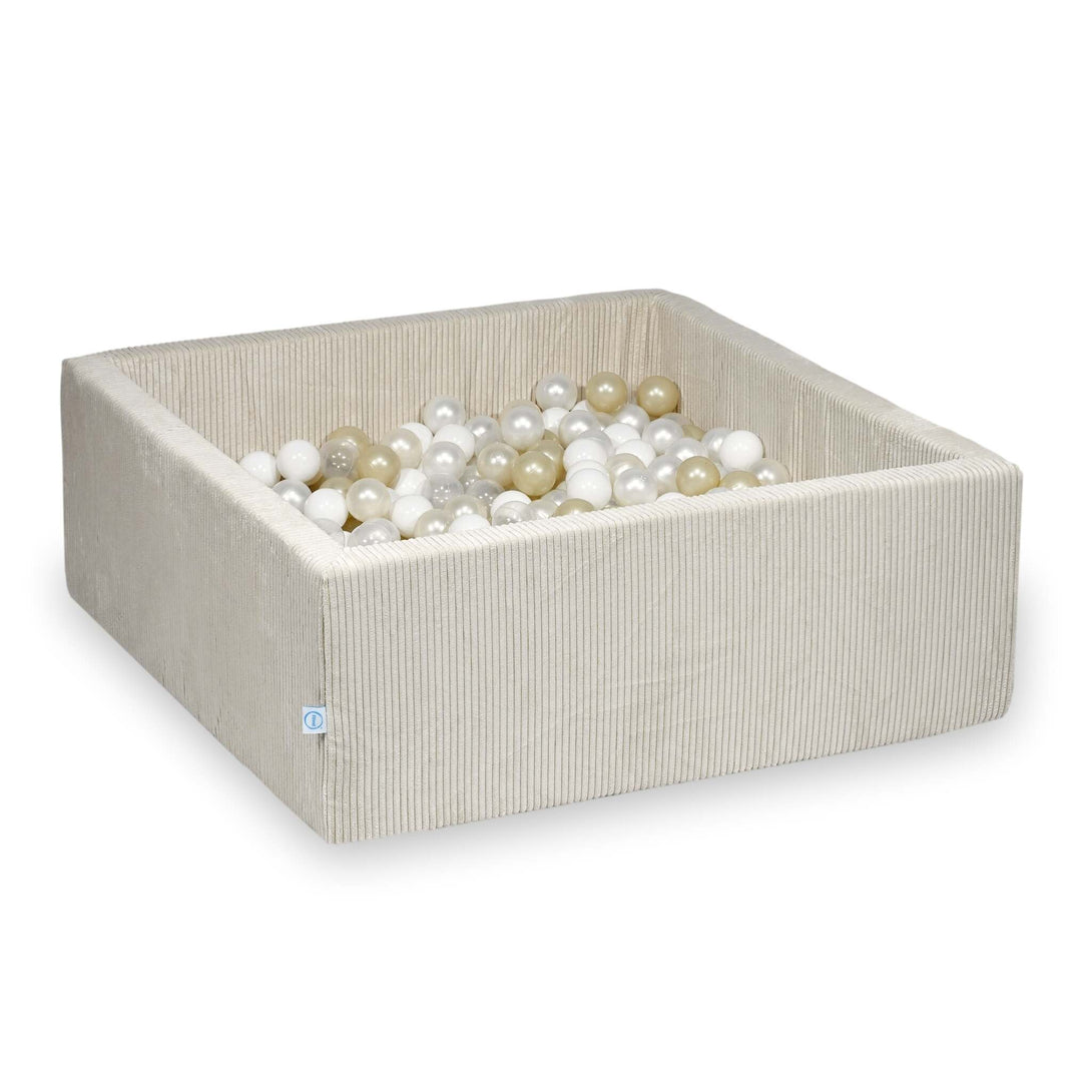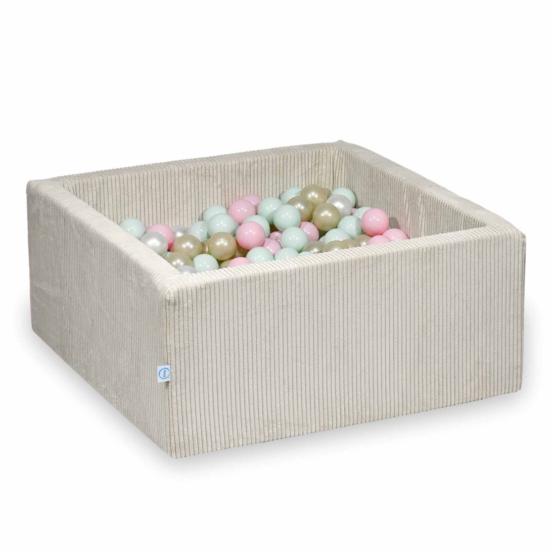 Piscina di palline quadrata in velluto a coste larghe Tobias, 2 dimensioni - Beige | Palline a scelta