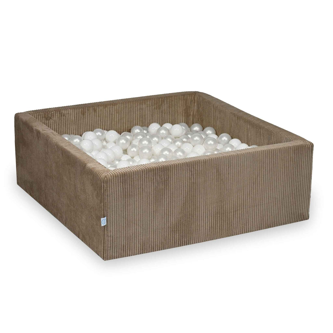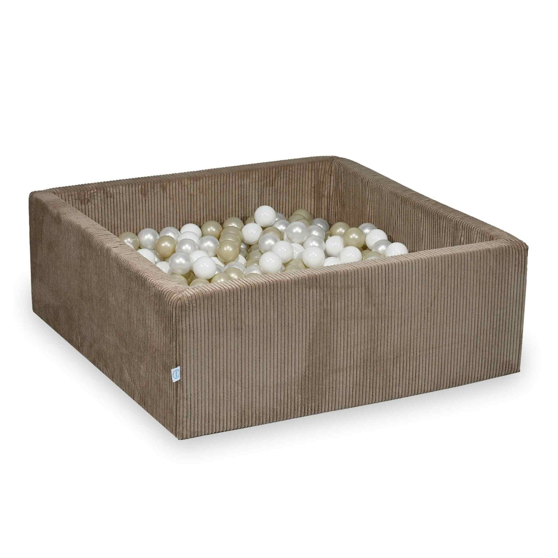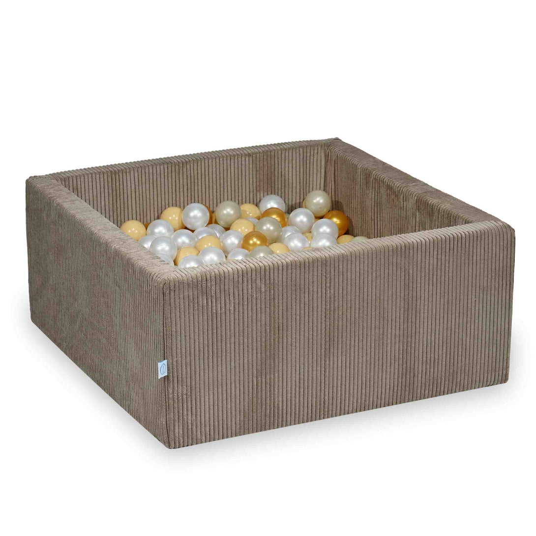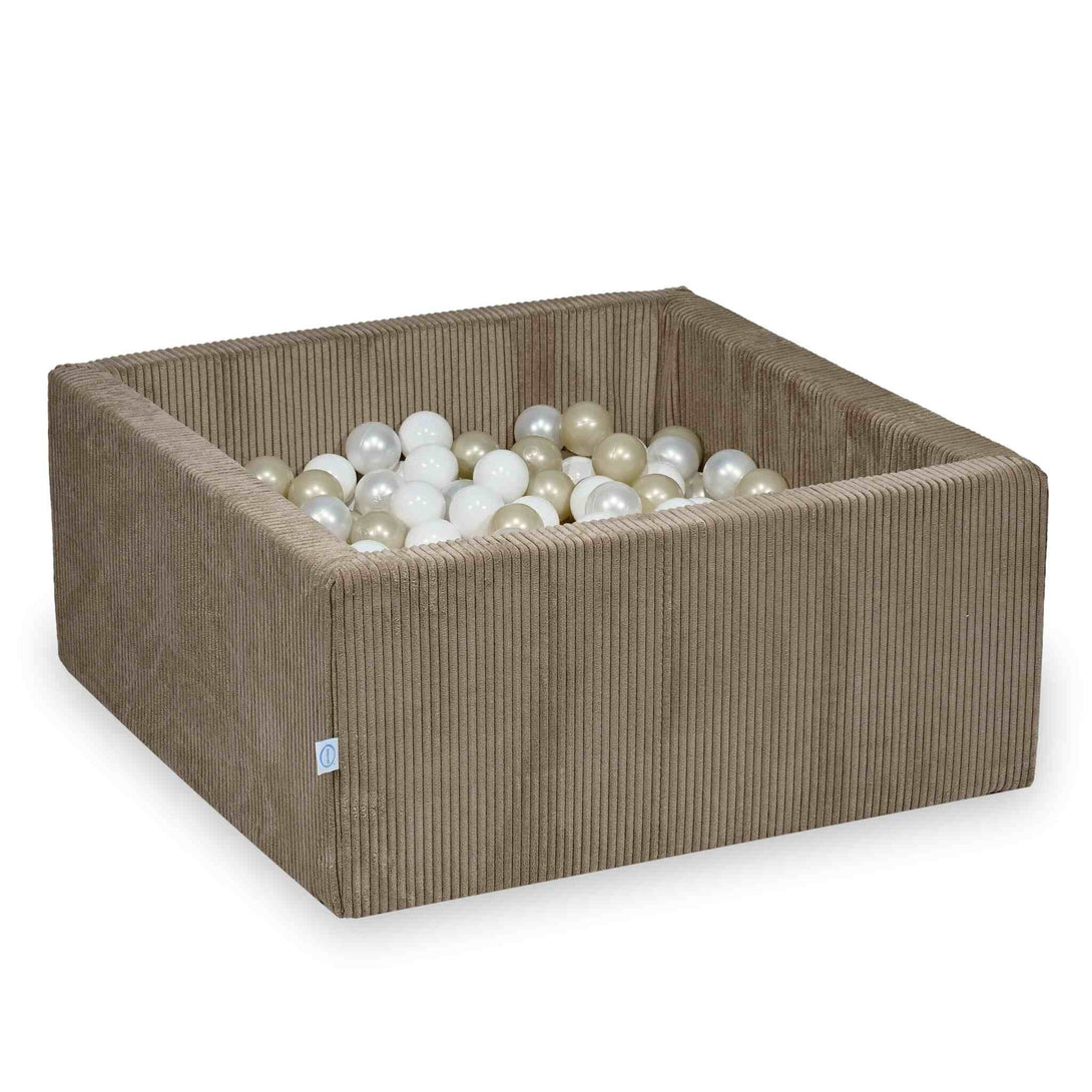 Piscina di palline quadrata in velluto a coste larghe Tobias, 2 dimensioni - Toffee | Palline a scelta