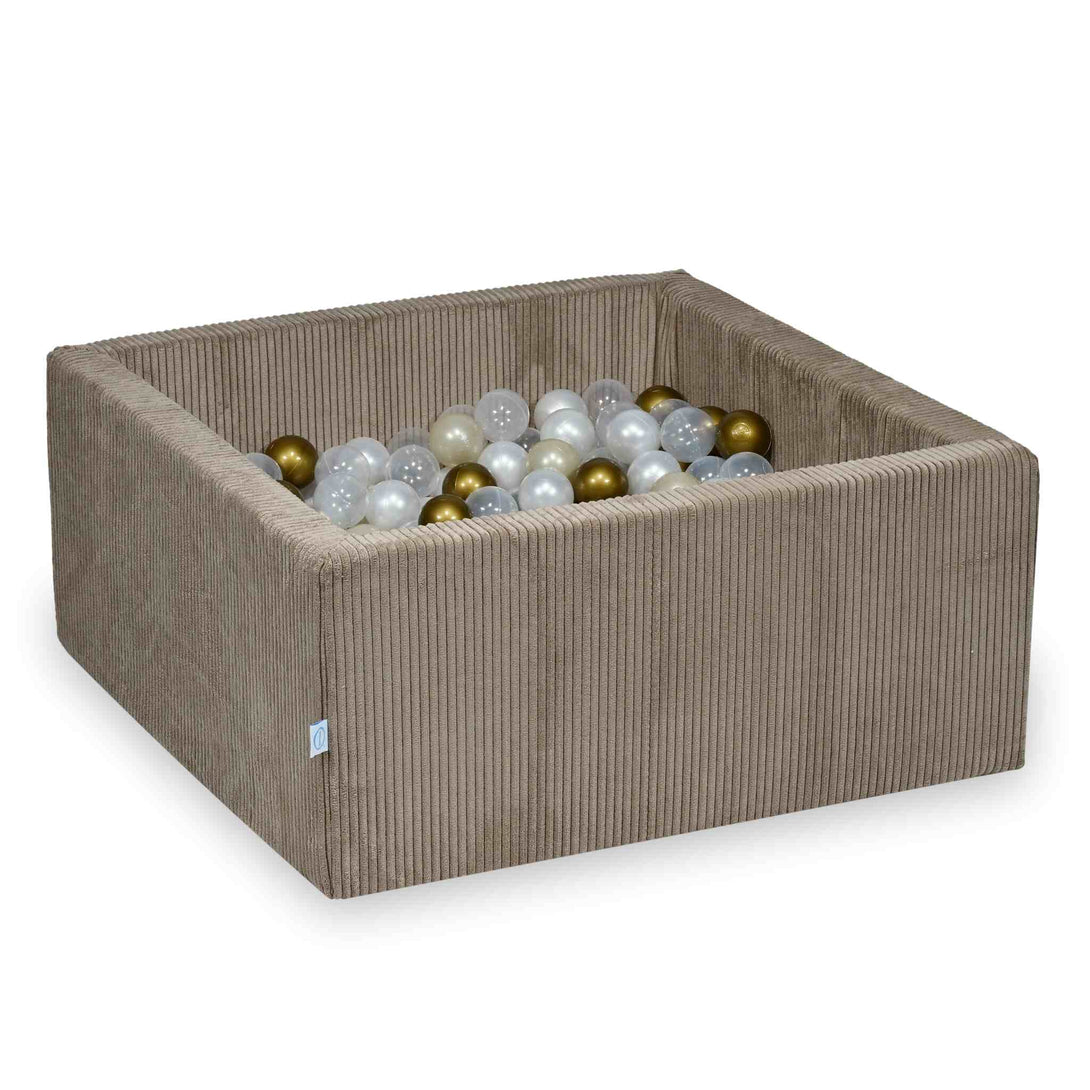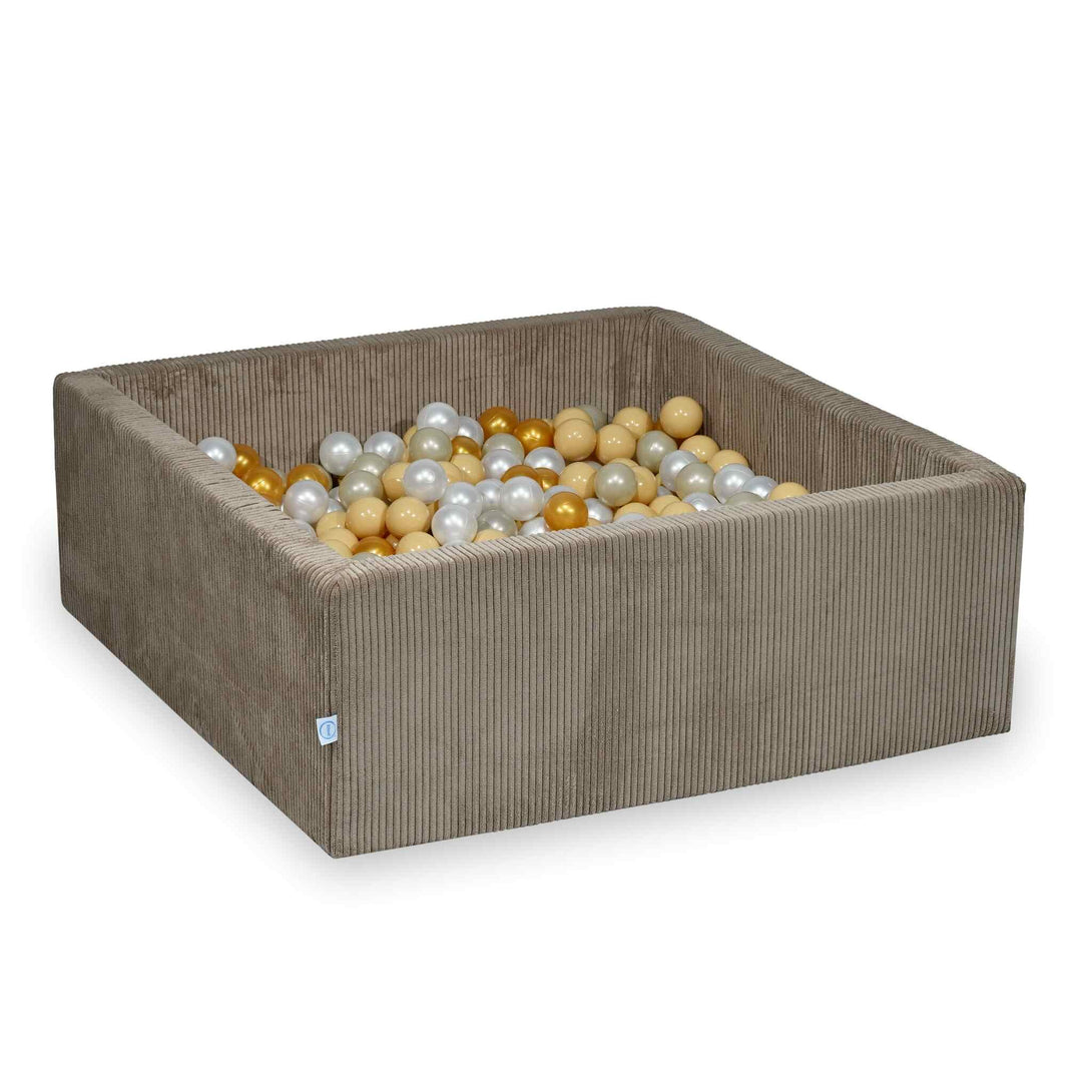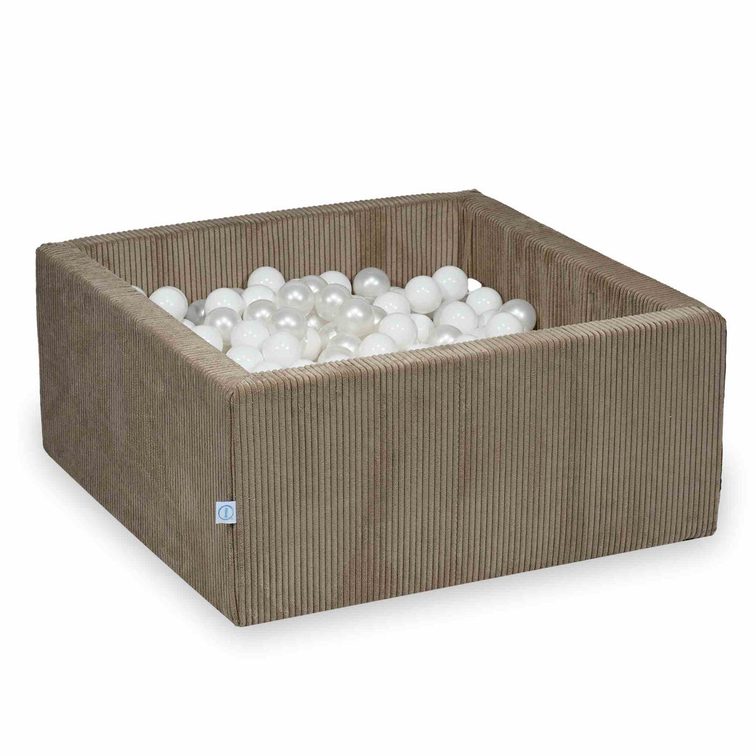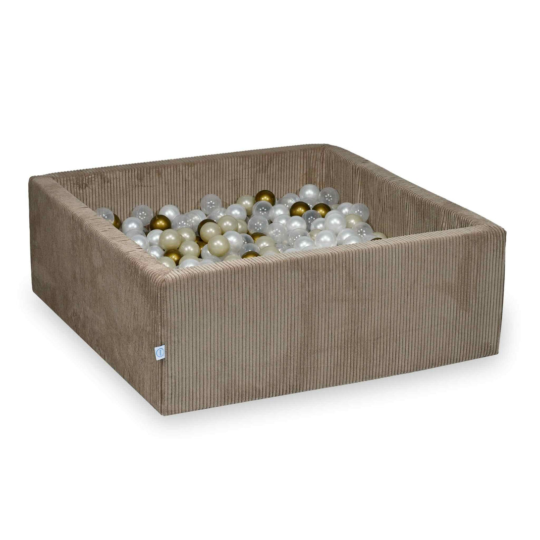Piscina di palline quadrata in velluto a coste larghe Tobias, 2 dimensioni - Toffee | Palline a scelta