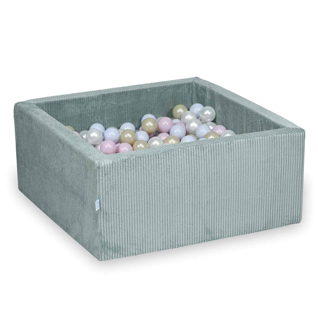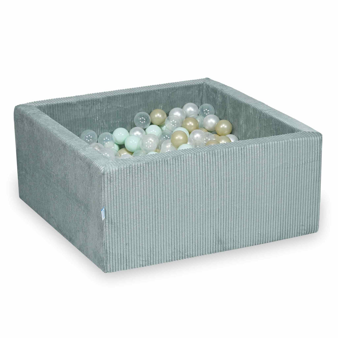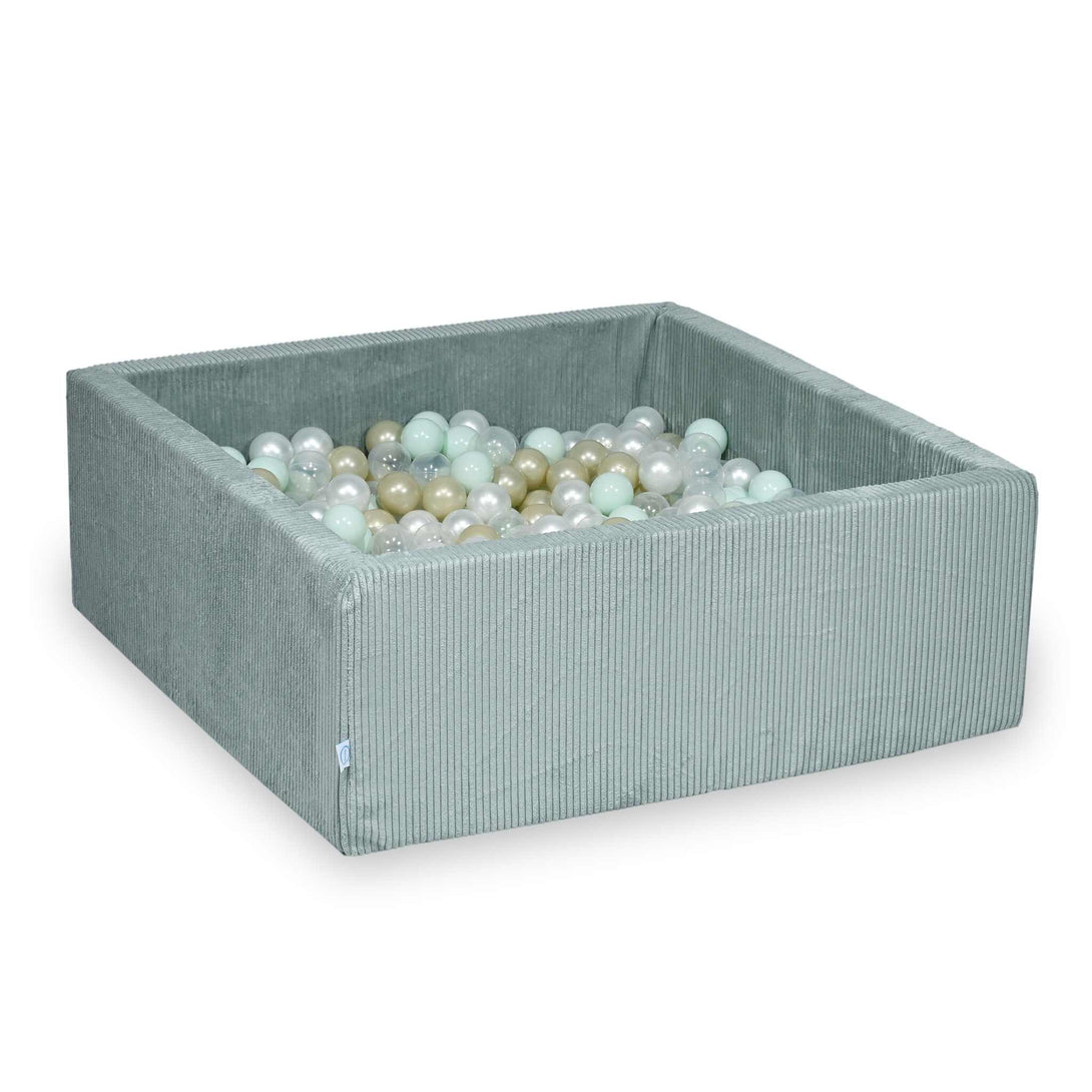 Piscina di palline quadrata in velluto a coste larghe Tobias, 2 dimensioni - Menta | Palline a scelta