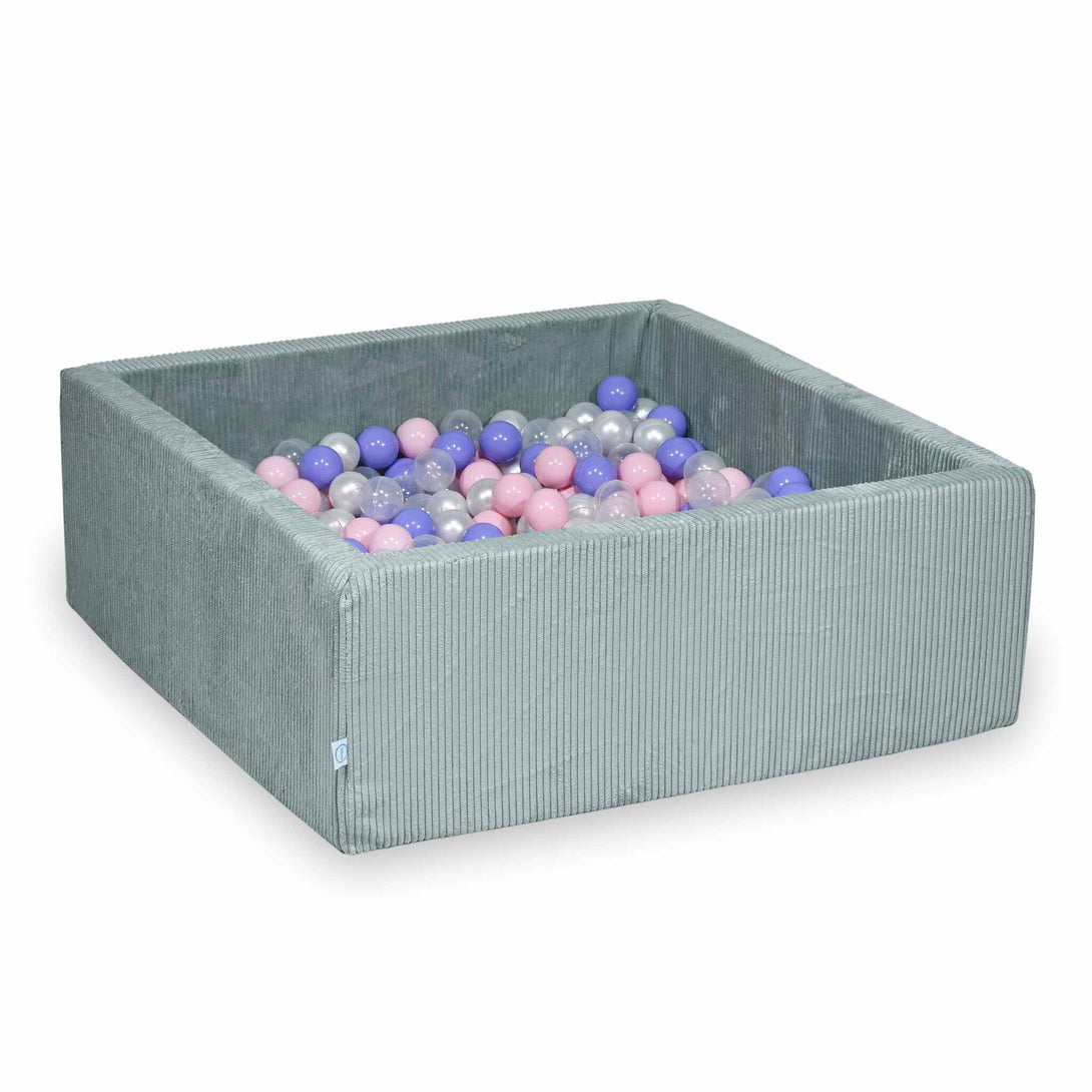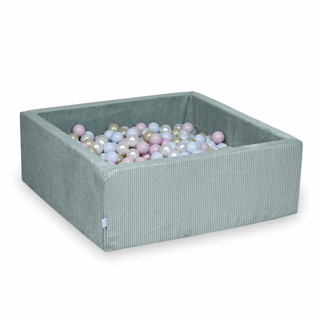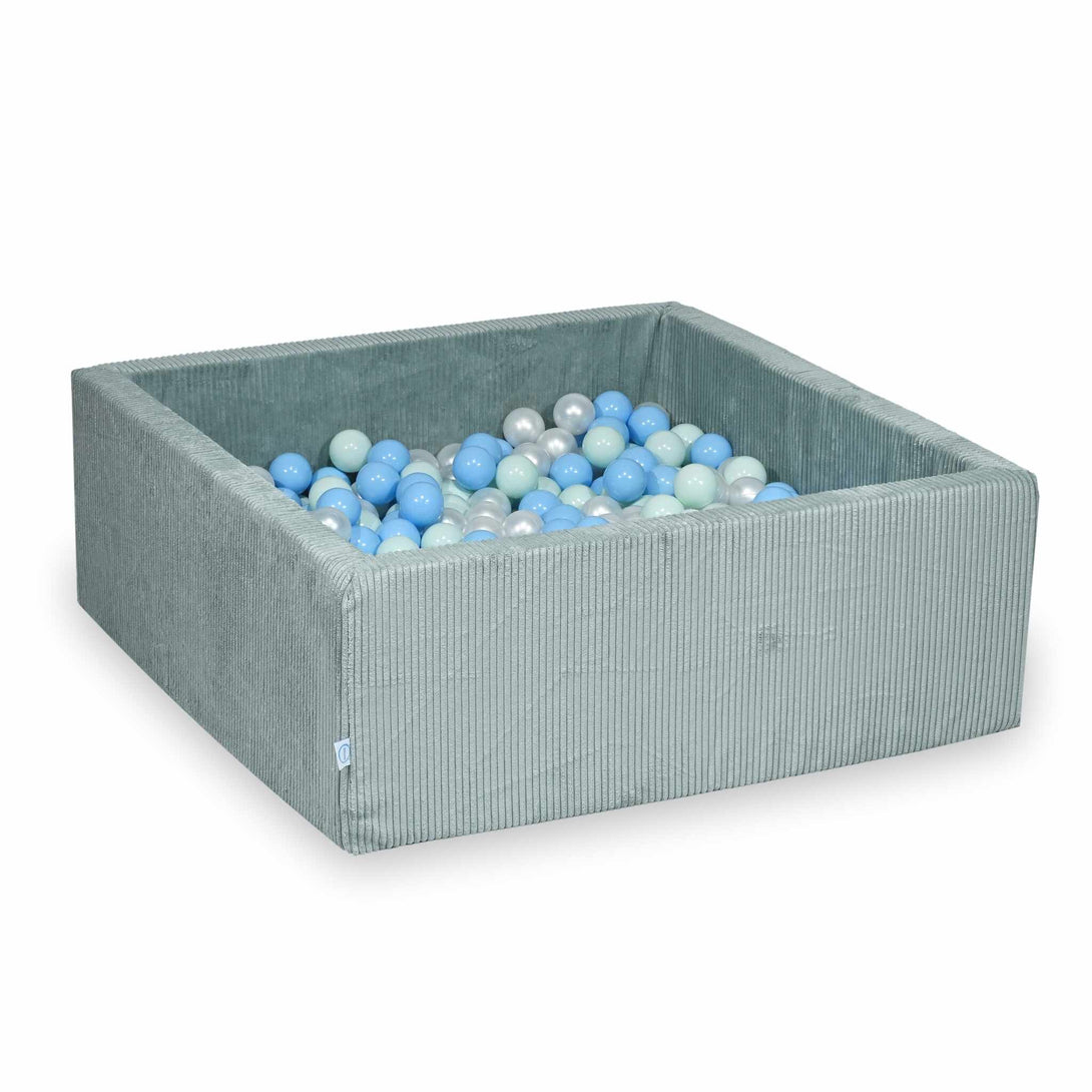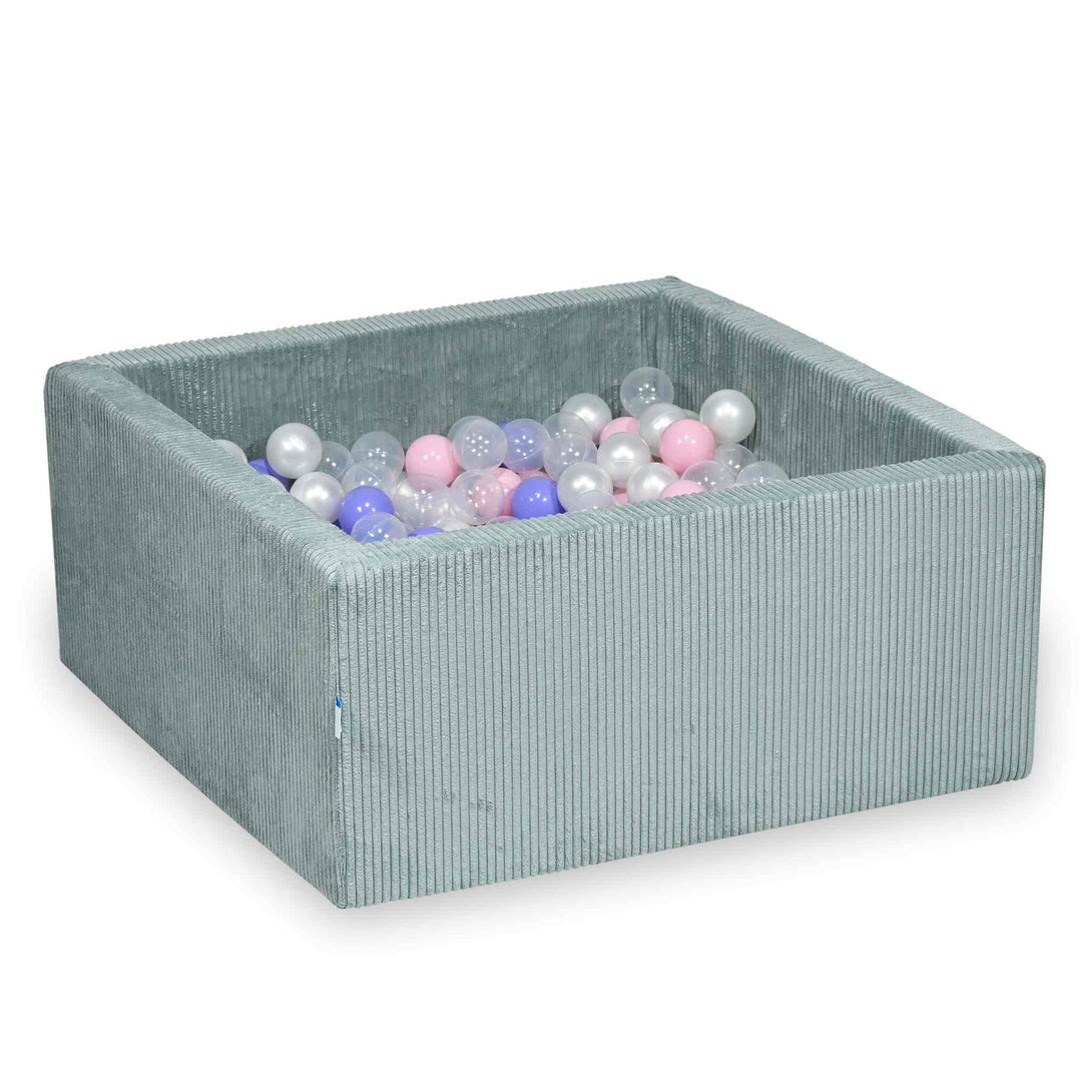 Piscina di palline quadrata in velluto a coste larghe Tobias, 2 dimensioni - Menta | Palline a scelta