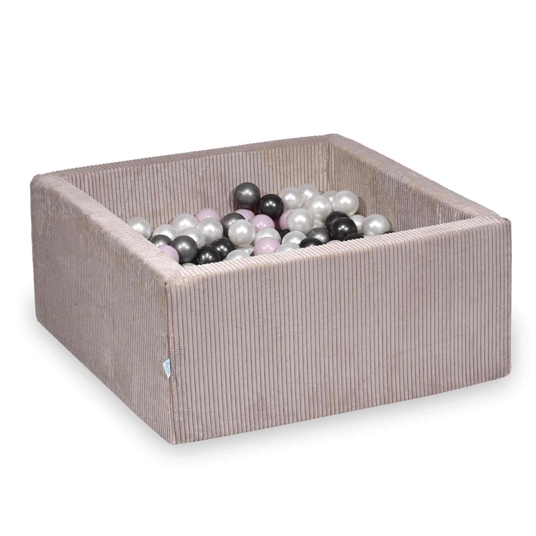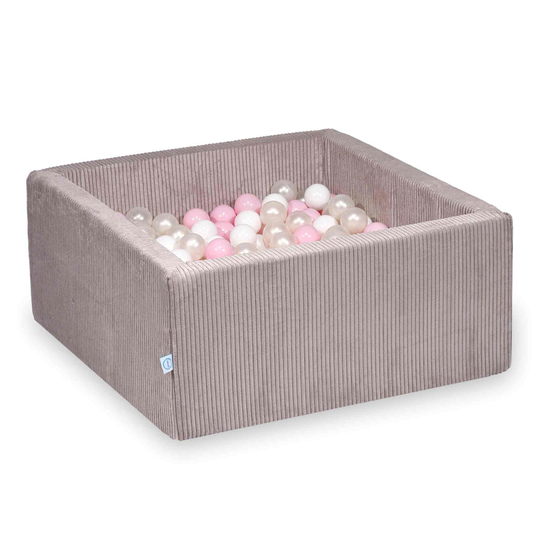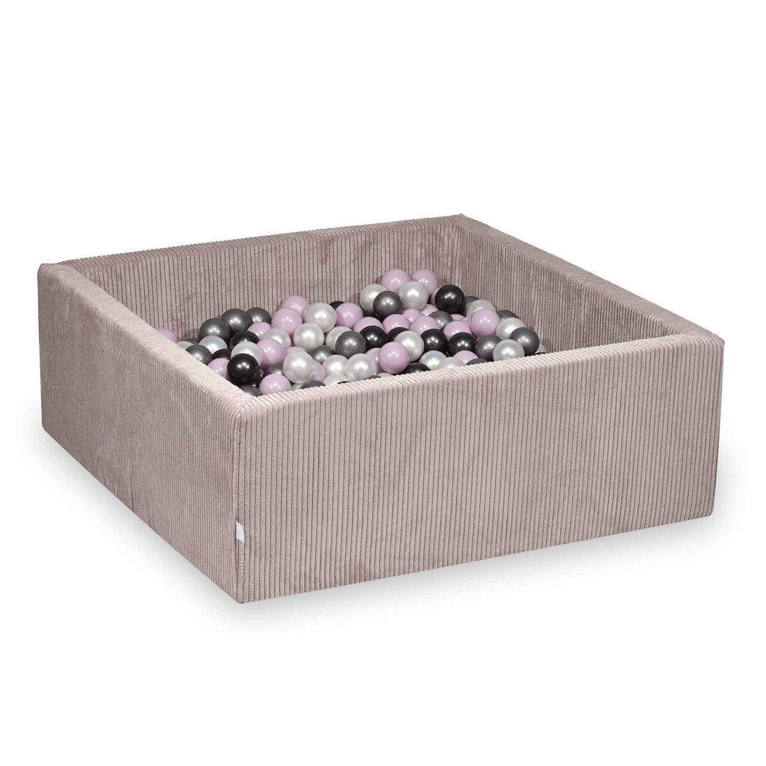 Piscina di palline quadrata in velluto a coste larghe Tobias, 2 dimensioni - Rosa | Palline a scelta