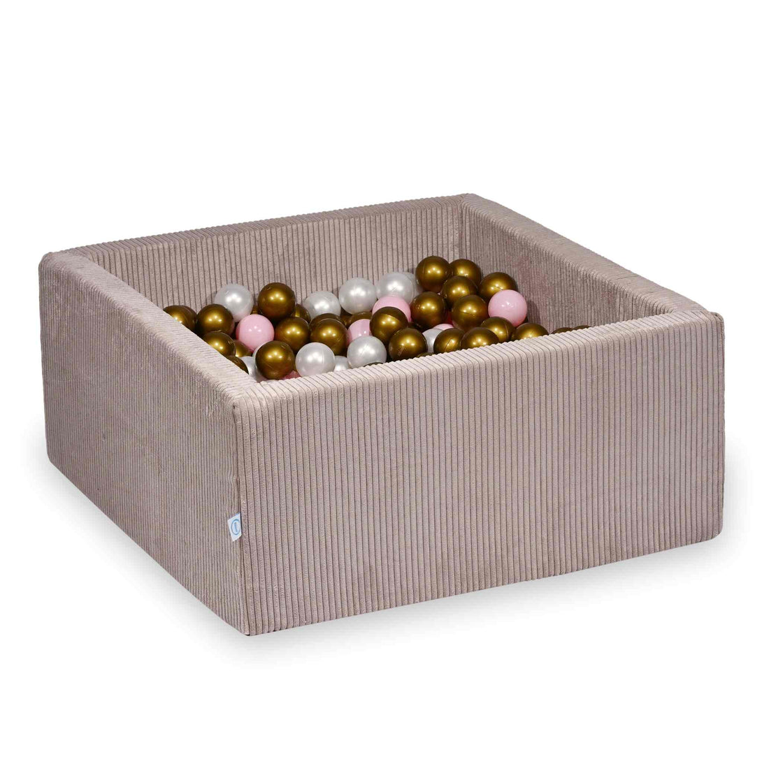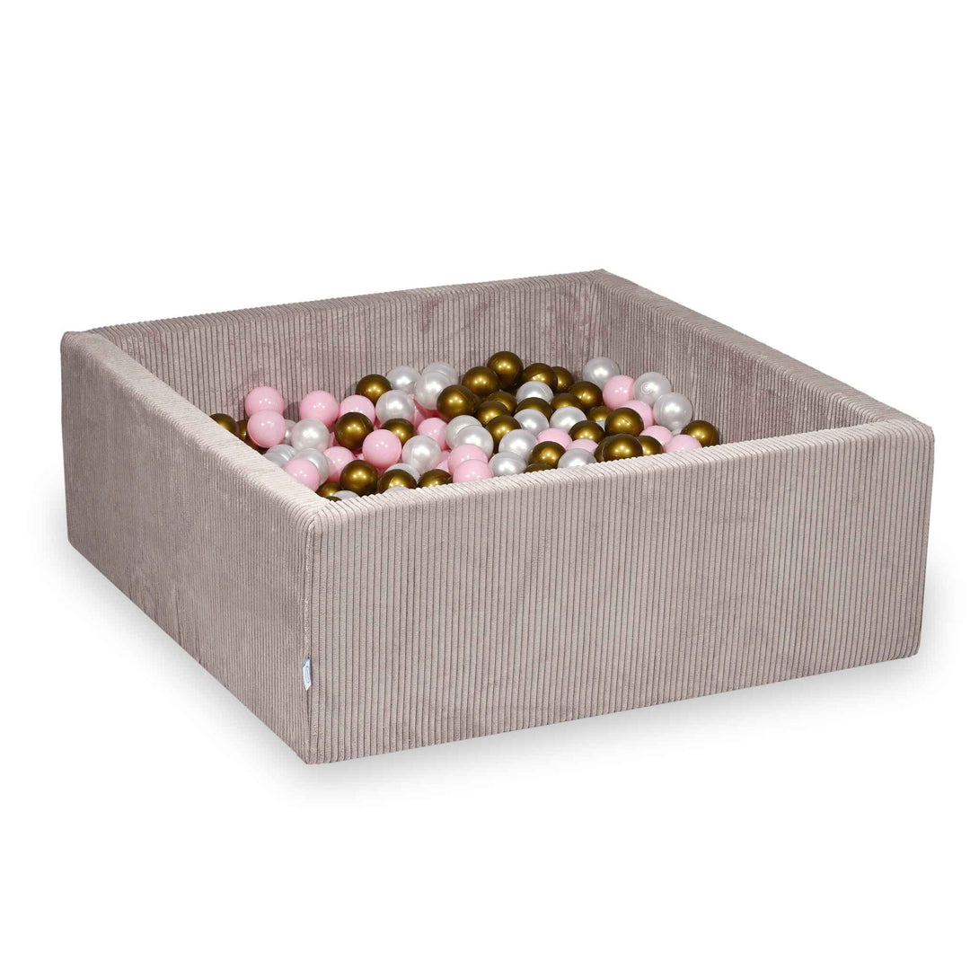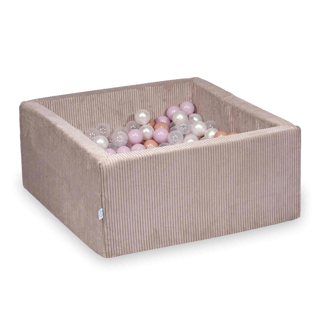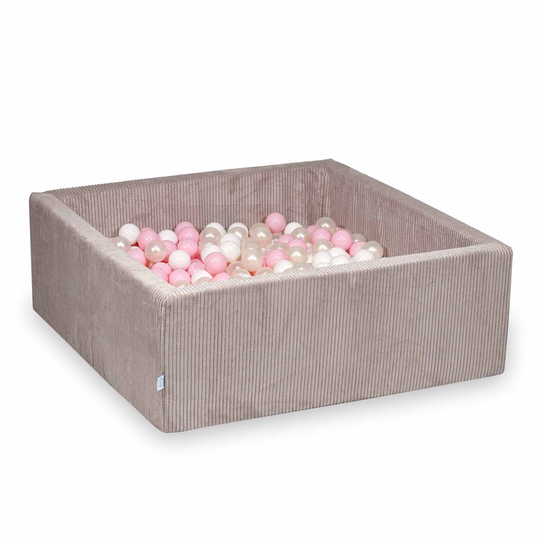 Piscina di palline quadrata in velluto a coste larghe Tobias, 2 dimensioni - Rosa | Palline a scelta