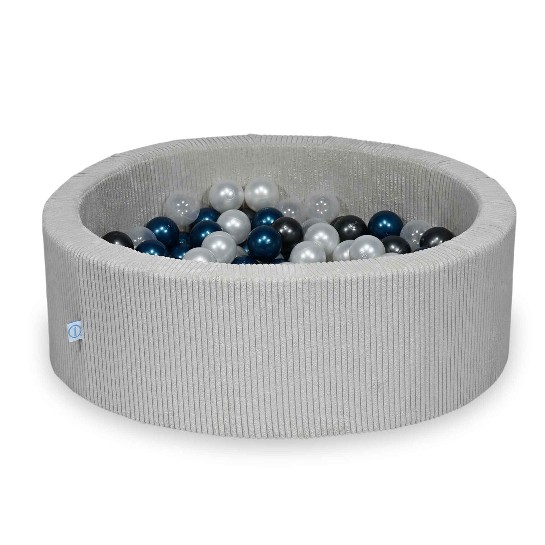 Piscina di palline rotonda 90cm in velluto a coste larghe Tobias, 2 dimensioni - Grigio | Palline a scelta