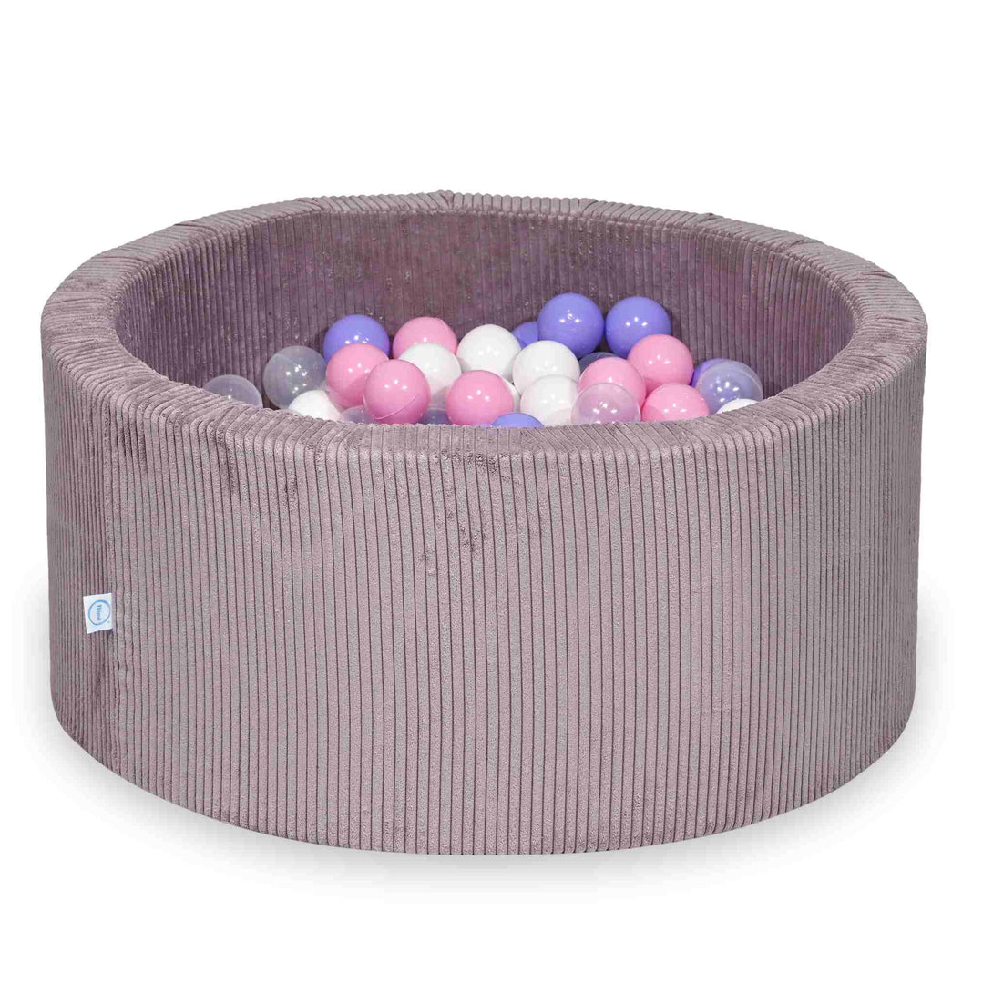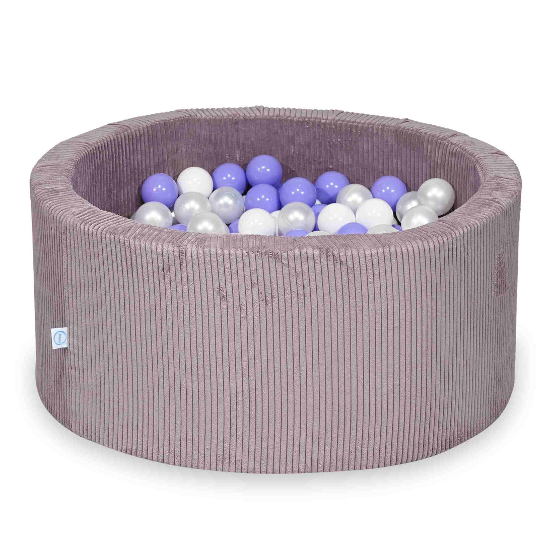 Piscina di palline rotonda 90cm in velluto a coste larghe Tobias, 2 dimensioni - Lavanda | Palline a scelta