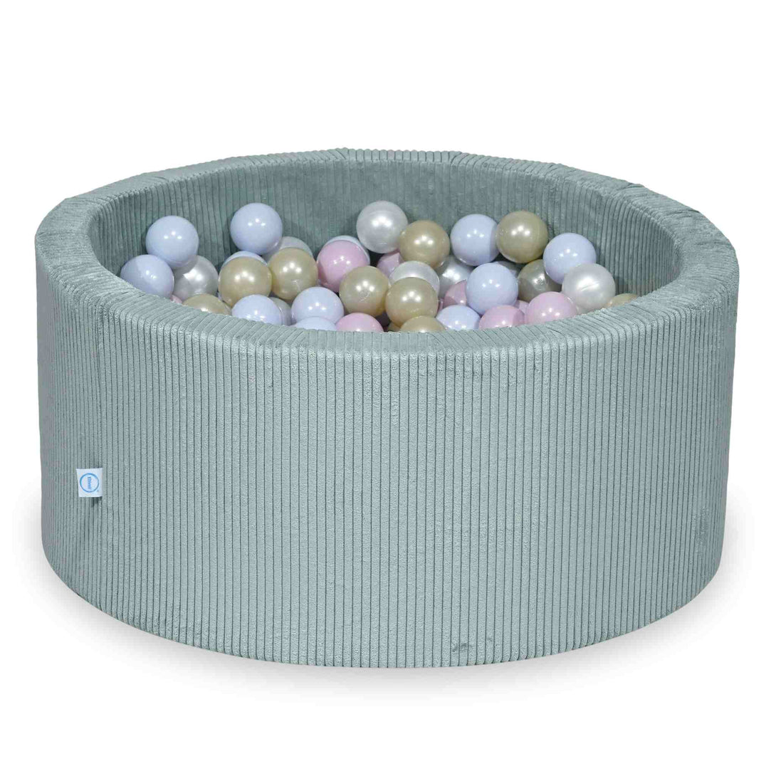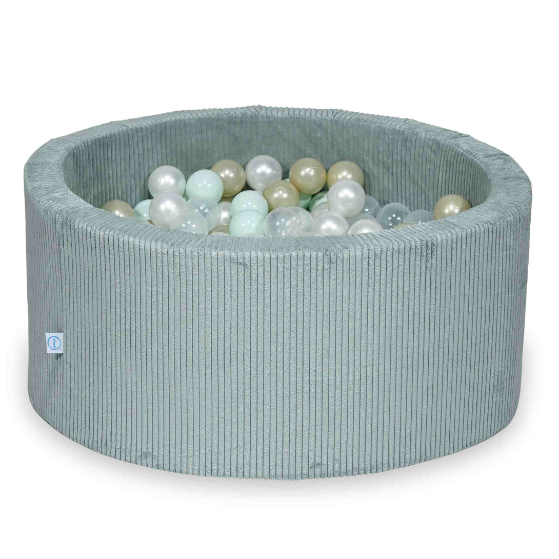 Piscina di palline rotonda 90cm in velluto a coste larghe Tobias, 2 dimensioni - Menta | Palline a scelta