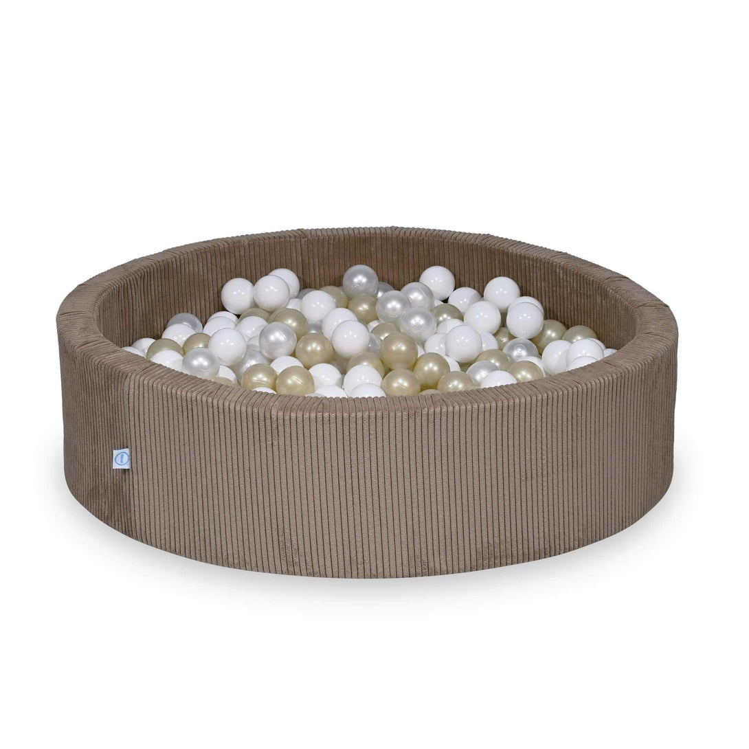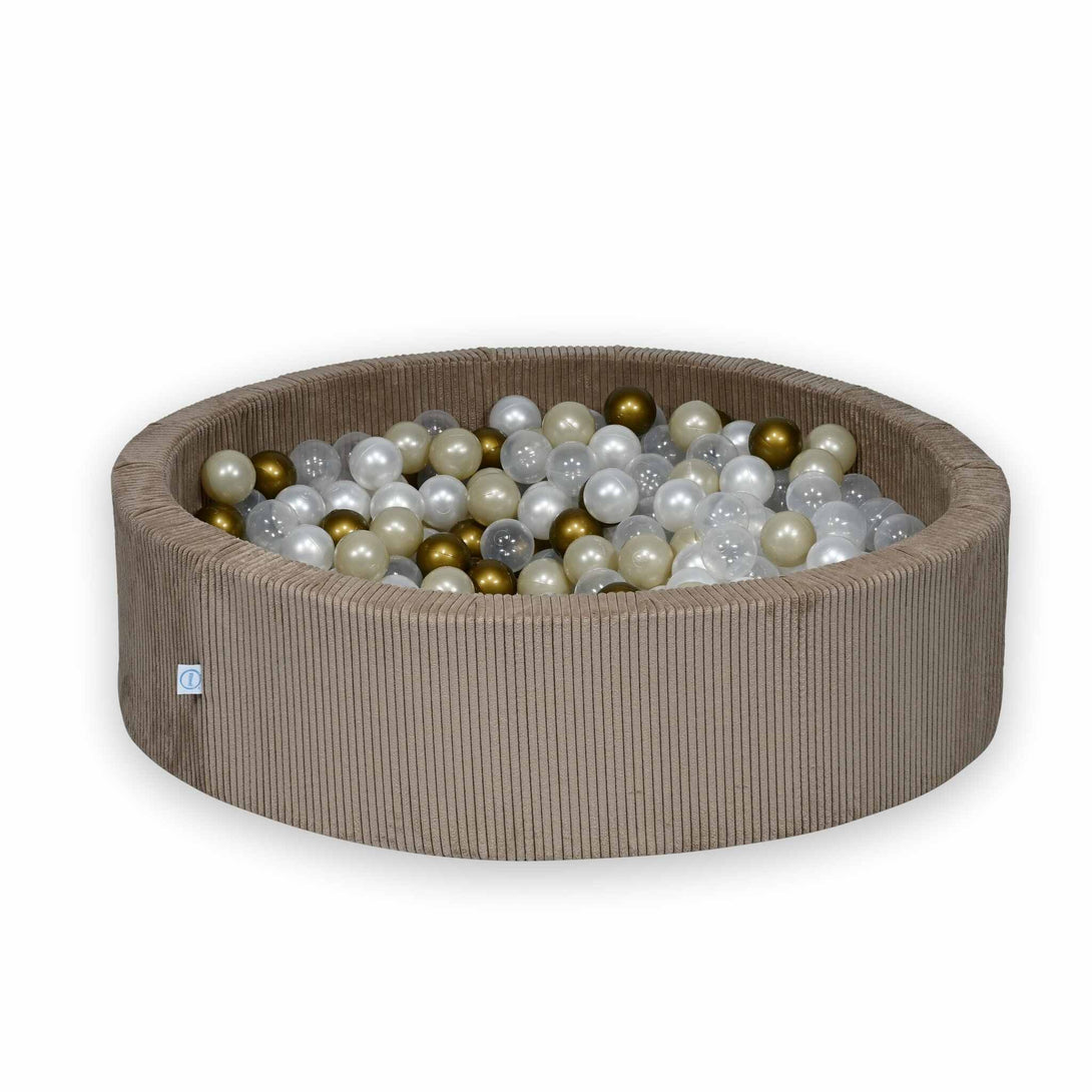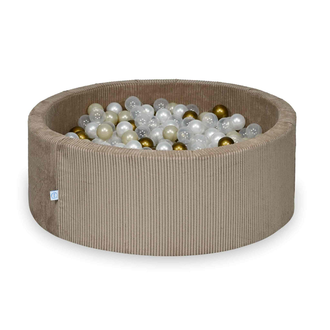 Piscina di palline rotonda XL 110x30cm in velluto a coste larghe Tobias, 400 palline - Toffee | Palline a scelta
