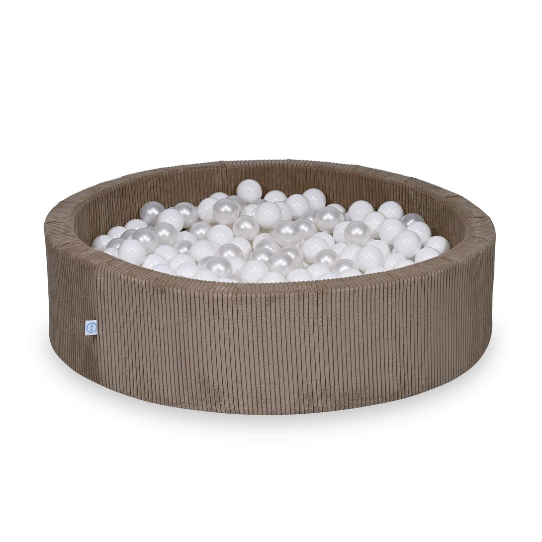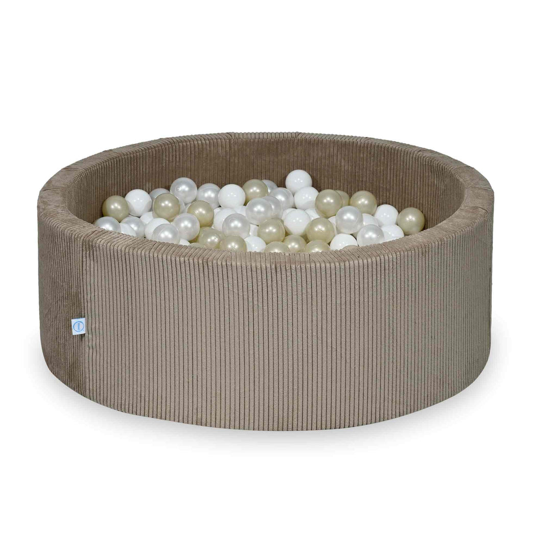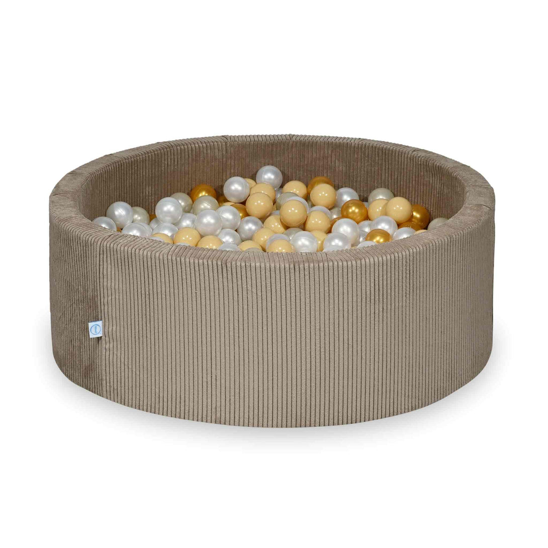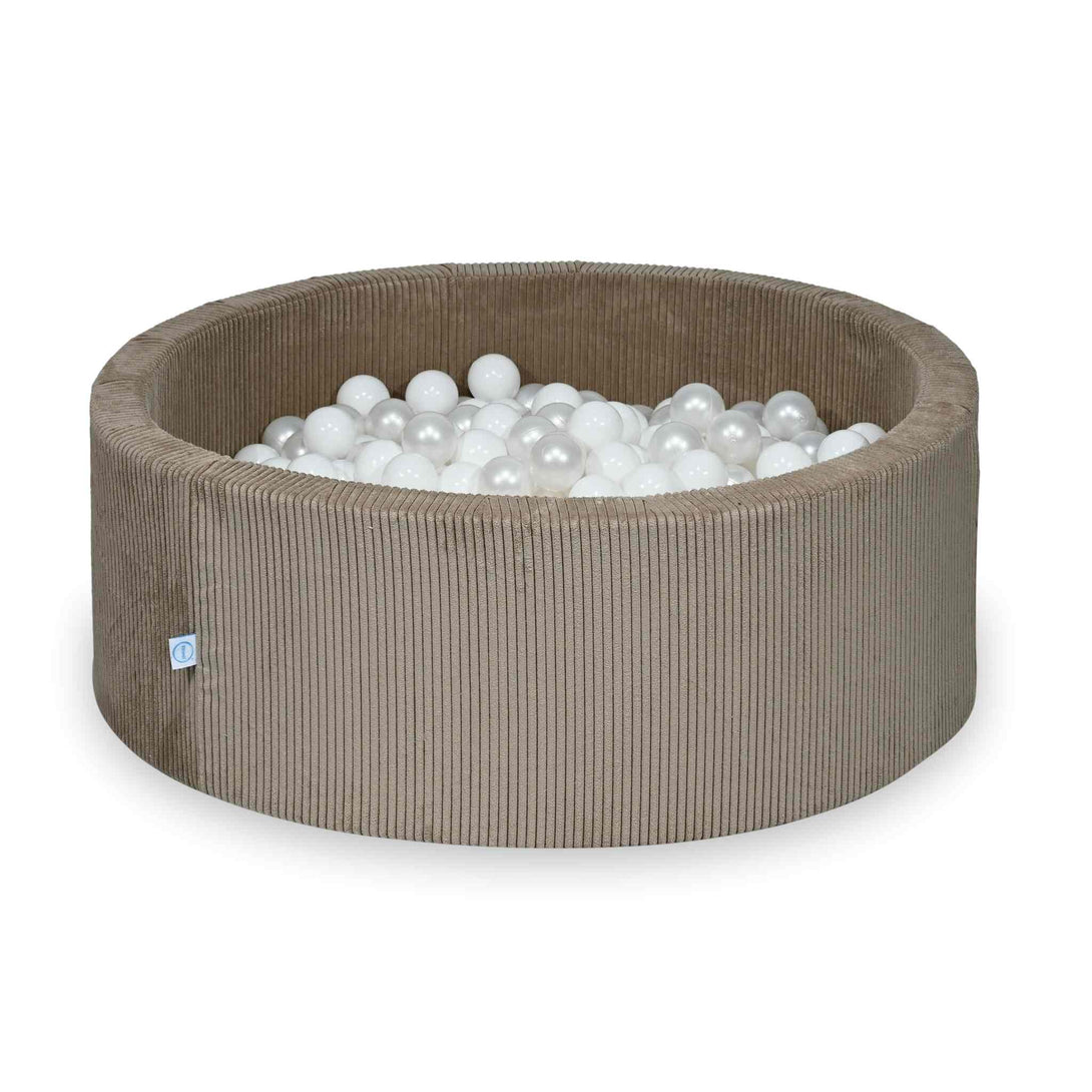 Piscina di palline rotonda XL 110x30cm in velluto a coste larghe Tobias, 400 palline - Toffee | Palline a scelta