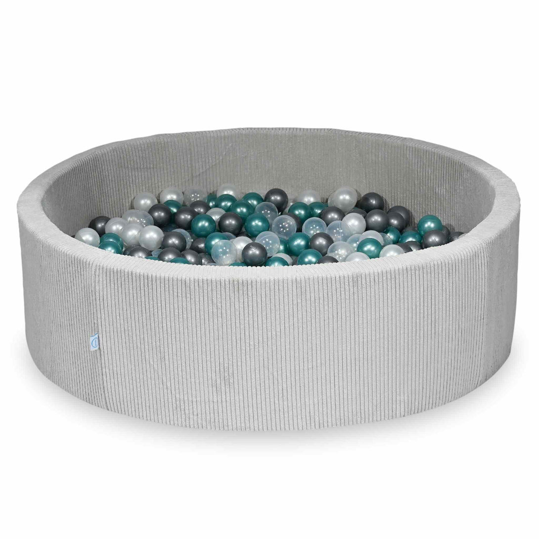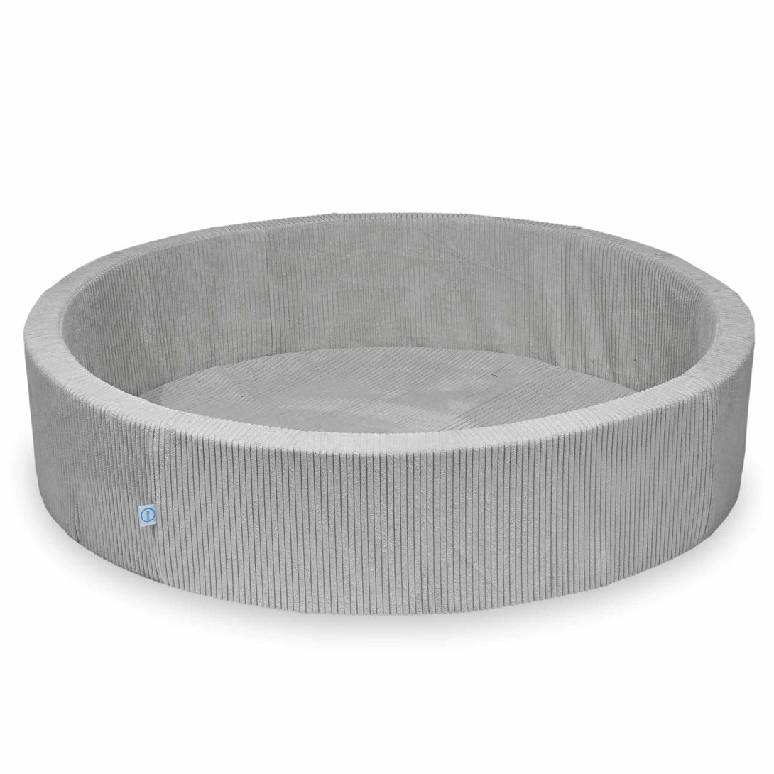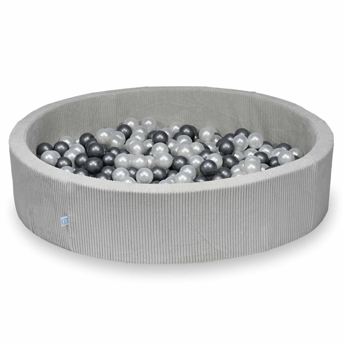 Piscina di palline rotonda XXL 130x30cm in velluto a coste larghe Tobias, 600 palline - Grigio chiaro | Palline a scelta