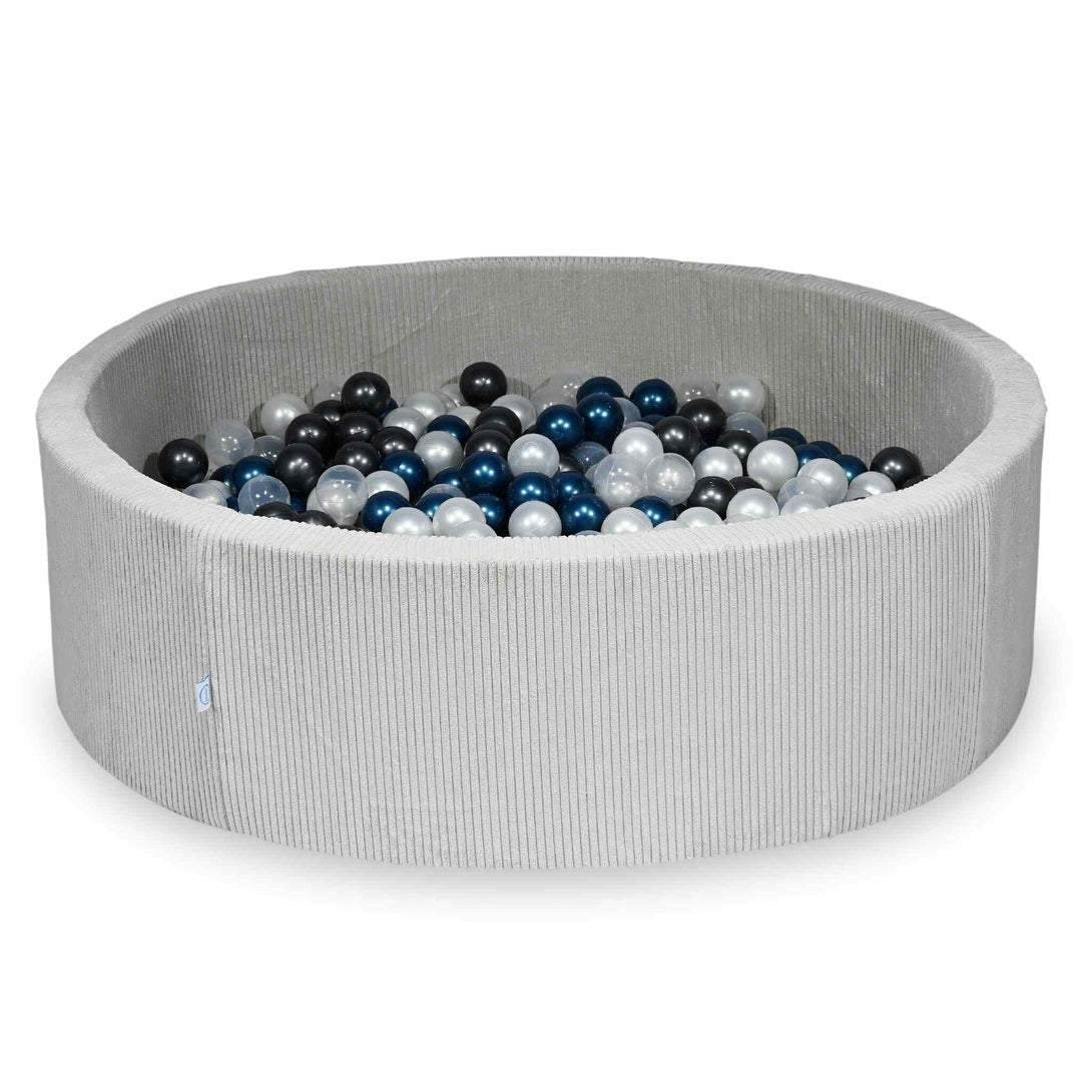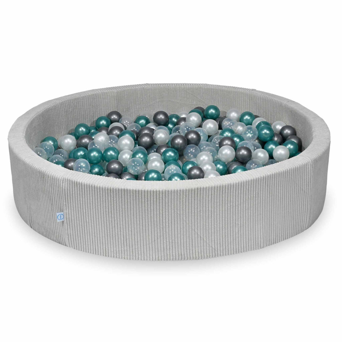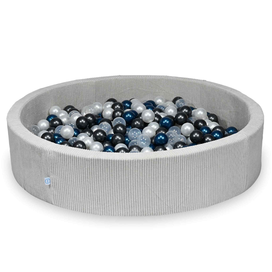 Piscina di palline rotonda XXL 130x30cm in velluto a coste larghe Tobias, 600 palline - Grigio chiaro | Palline a scelta