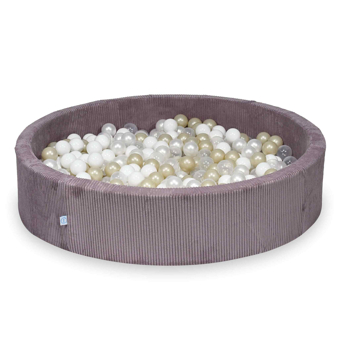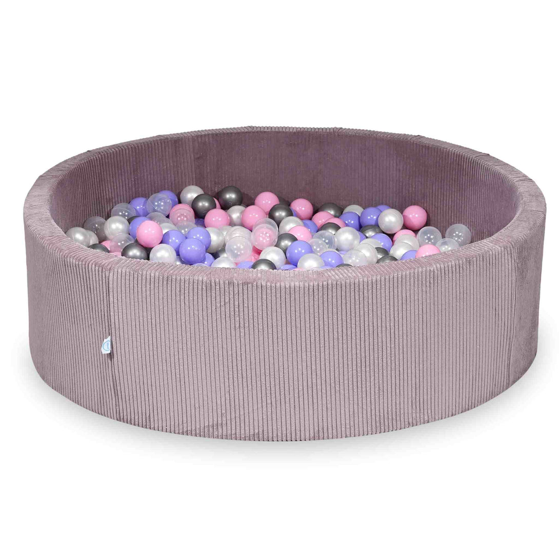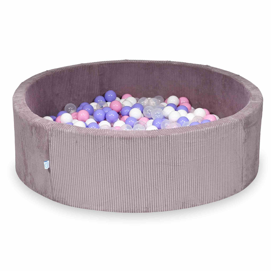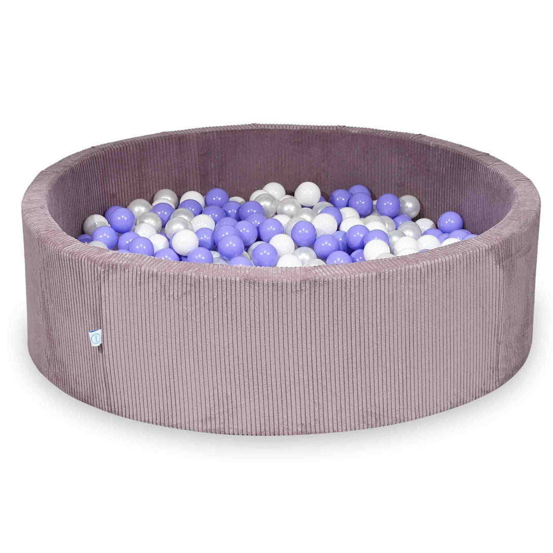 Piscina di palline rotonda XXL 130x30cm in velluto a coste larghe Tobias, 600 palline - Lavanda | Palline a scelta