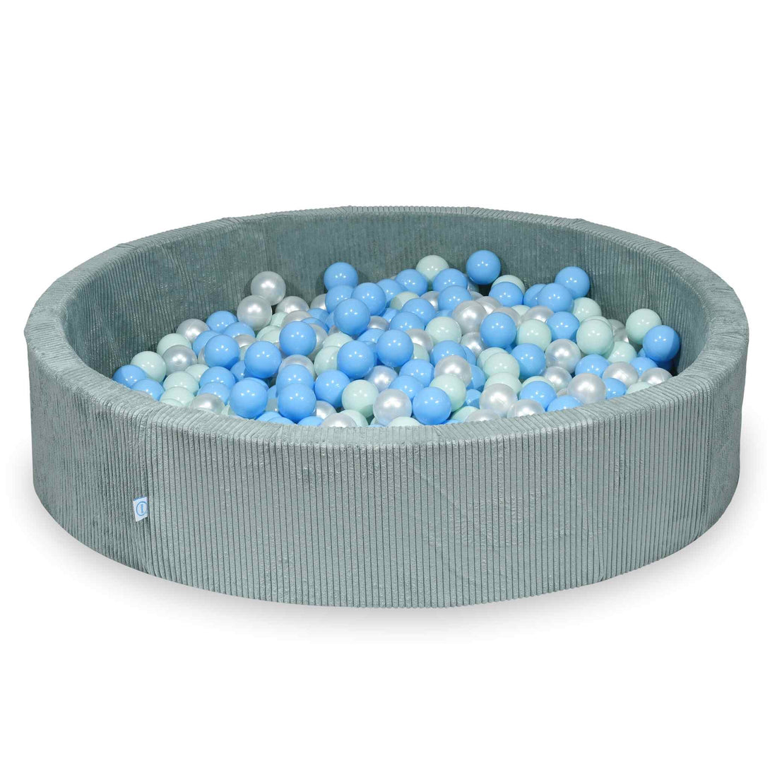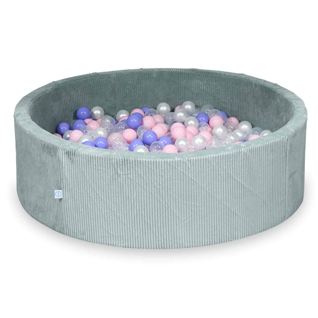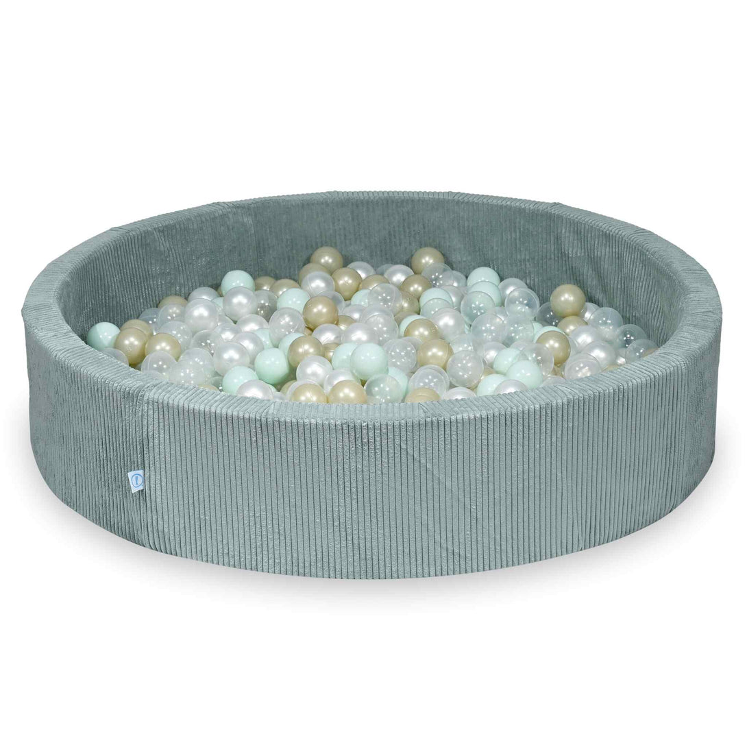 Piscina di palline rotonda XXL 130x30cm in velluto a coste larghe Tobias, 600 palline - Menta | Palline a scelta