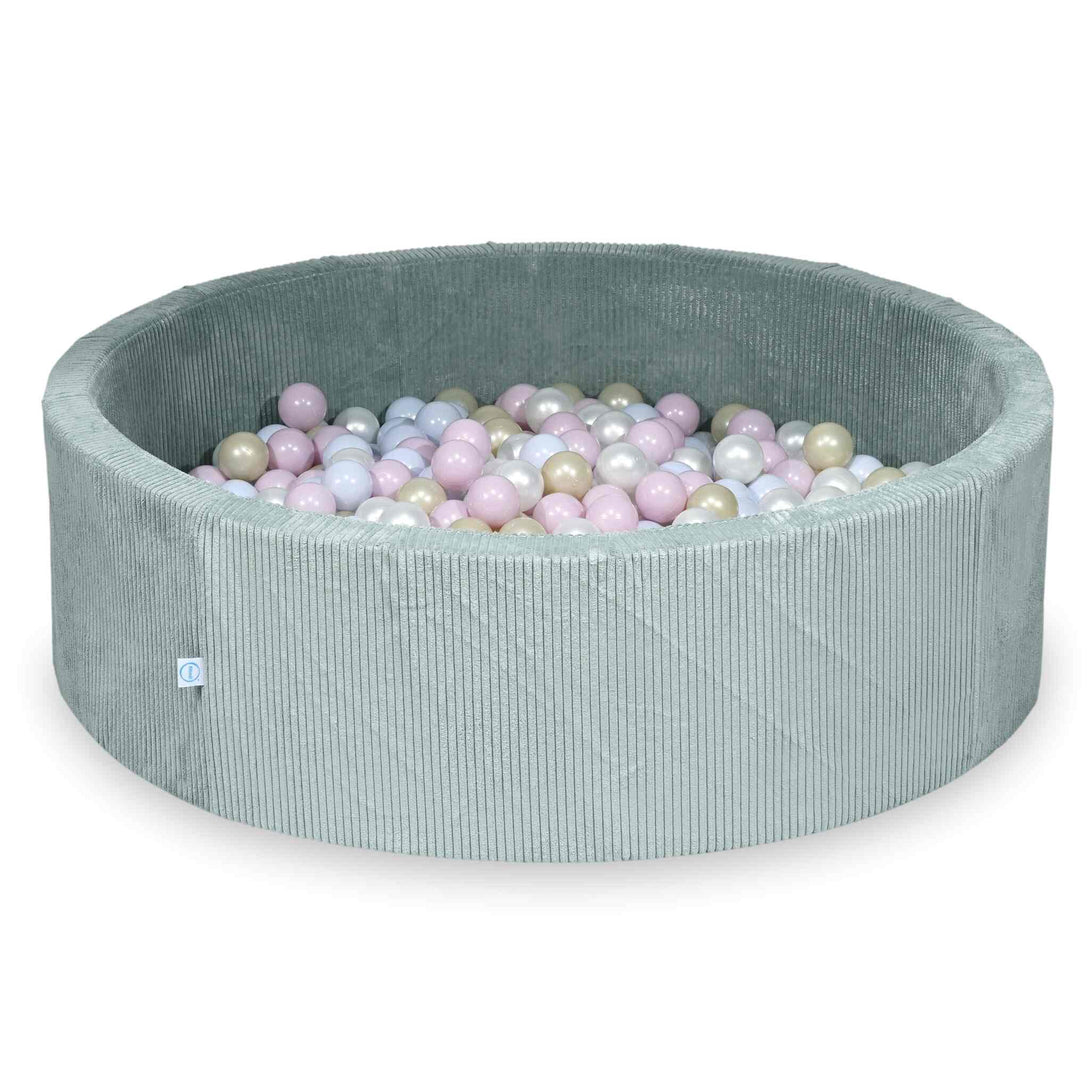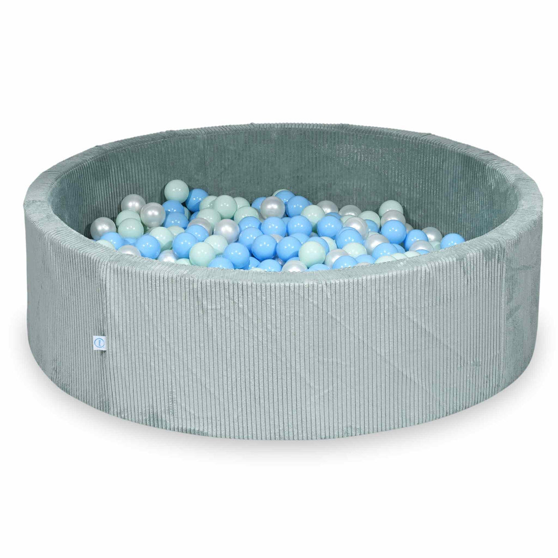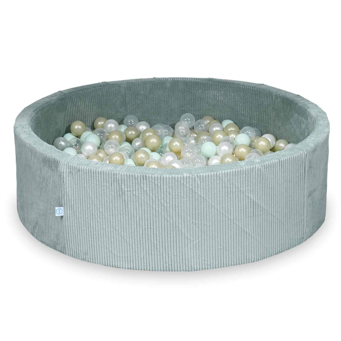 Piscina di palline rotonda XXL 130x30cm in velluto a coste larghe Tobias, 600 palline - Menta | Palline a scelta