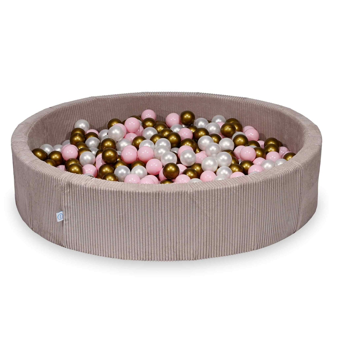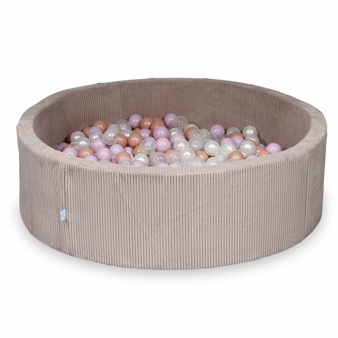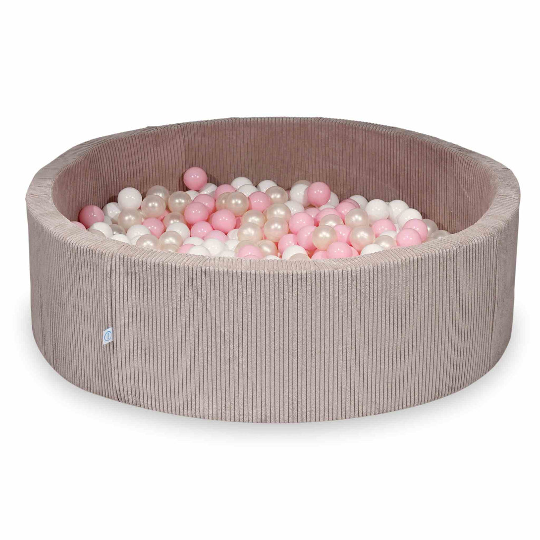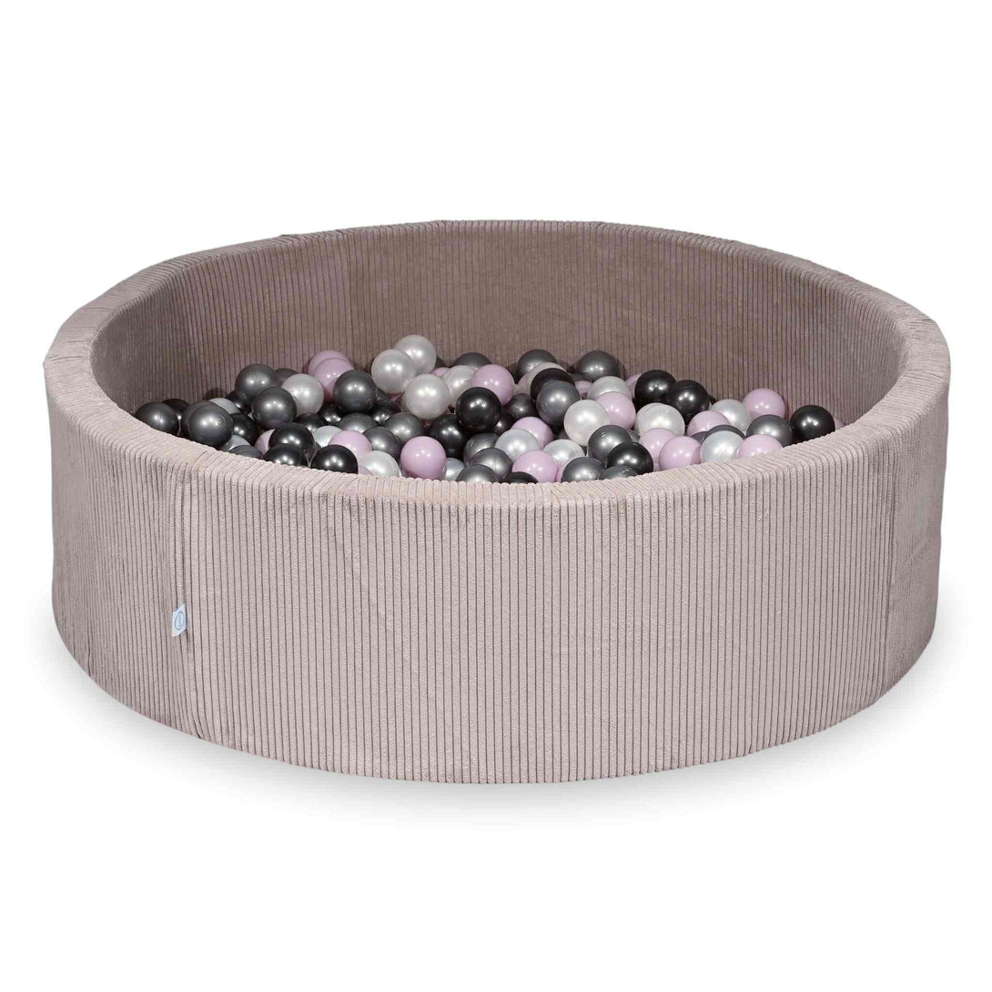 Piscina di palline rotonda XXL 130x30cm in velluto a coste larghe Tobias, 600 palline - Rosa | Palline a scelta