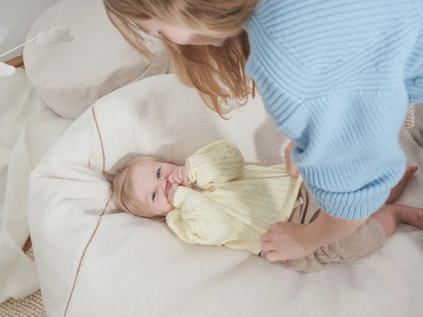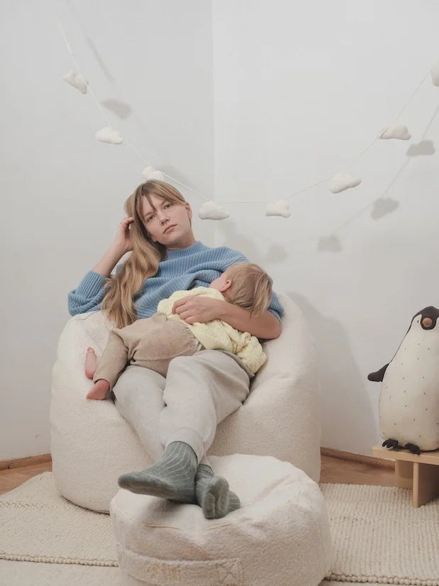 Questo pouf gigante a forma di pera non è solo un sedile per il tuo bambino, è anche il suo supporto per giocare, per i solletichi, per i baci e molto altro!