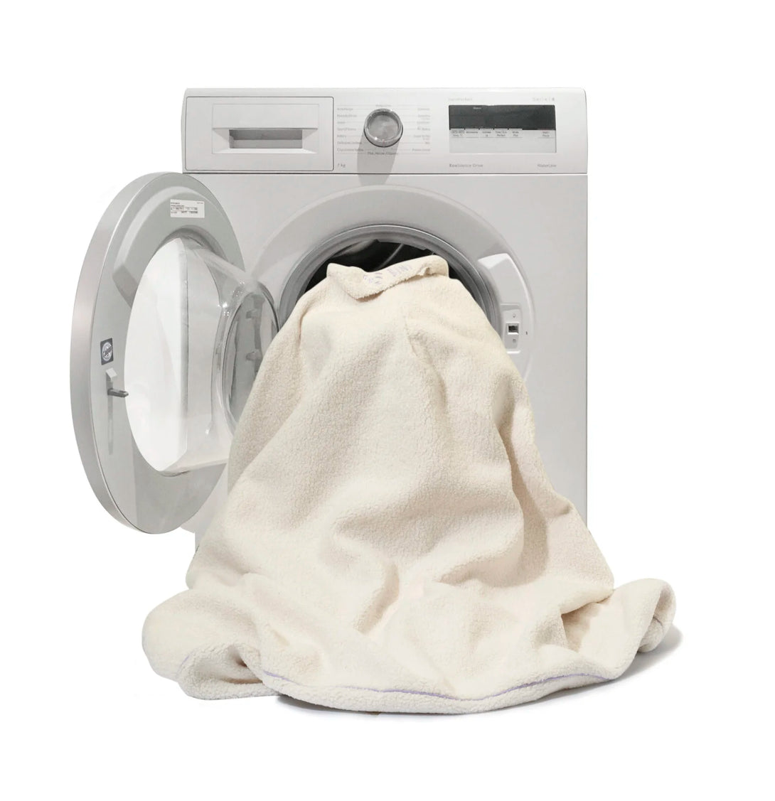 - Fodera lavabile in lavatrice a 30°C con programma di lavaggio delicato. Preferibilmente al rovescio.