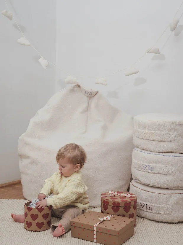 La poltrona sacco Bini è adatta ai bambini abbastanza grandi da potersi muovere da soli. Può supportare molte attività di concentrazione e gioco libero per molti anni ed è adatto anche per gli adulti!