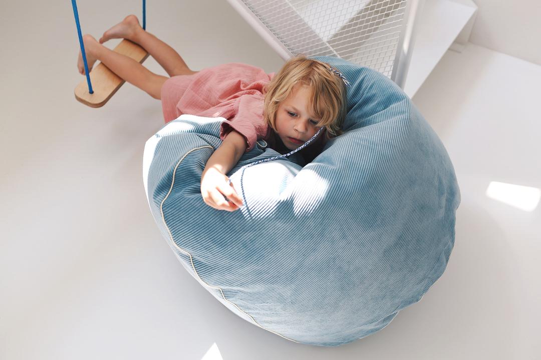 La poltrona sacco Bini è adatta ai bambini abbastanza grandi da potersi muovere da soli. Può supportare molte attività di concentrazione e gioco libero per molti anni ed è adatto anche per gli adulti!