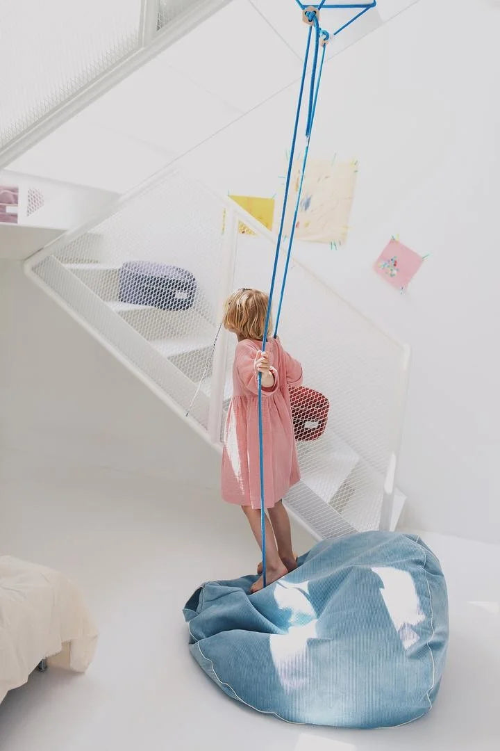 Progettati per essere solidi, comodi e durevoli, i suoi prodotti forniscono ai bambini un supporto unico durante i loro giochi, ma anche i loro momenti di lettura, concentrazione, relax, discussione, semplicemente piacere.