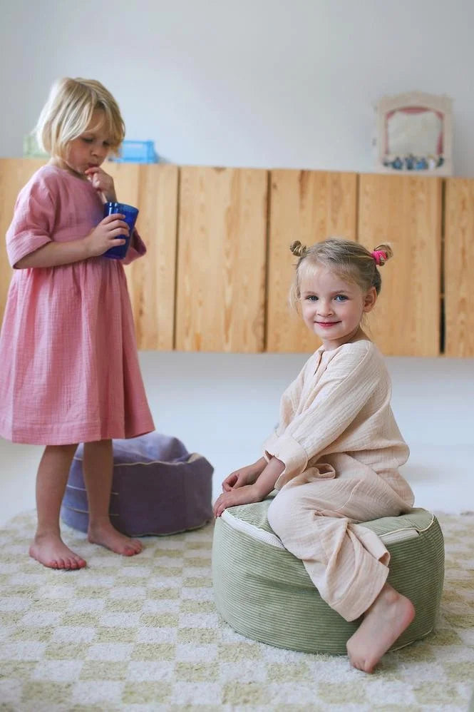 Questo pouf gigante in velluto a coste Bini aggiunge un tocco di morbidezza e carattere a qualsiasi ambiente. Abbastanza divertente per i bambini, ultra-confortevole per gli adulti. La sua texture marcata e il design accogliente lo rendono molto più di una semplice seduta: è un angolo accogliente per leggere, rilassarsi, riposare o condividere un momento in famiglia.