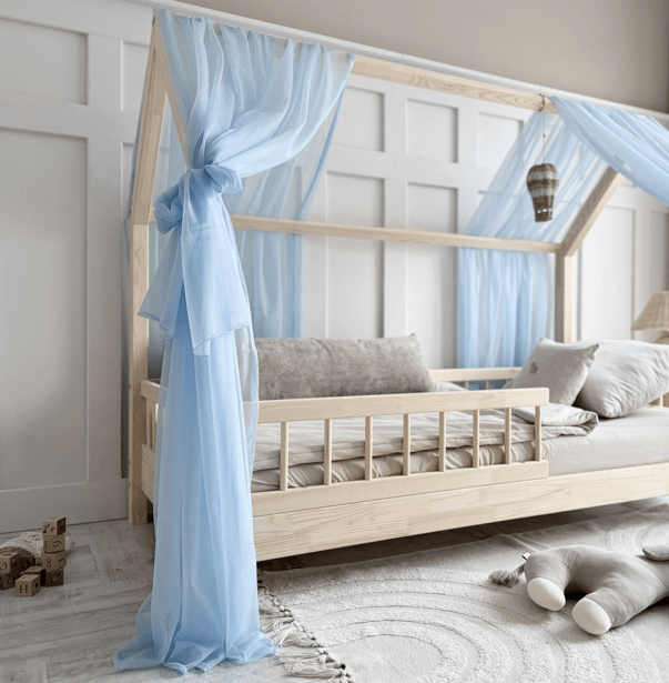 Voile de lit, idéal pour habiller et décorer le cadre de lit. Créez un espace cocooning, apaisant et sécurisé pour votre enfant. Produit sur mesure, respirant et respectueux de la peau sensible des tout-petits.