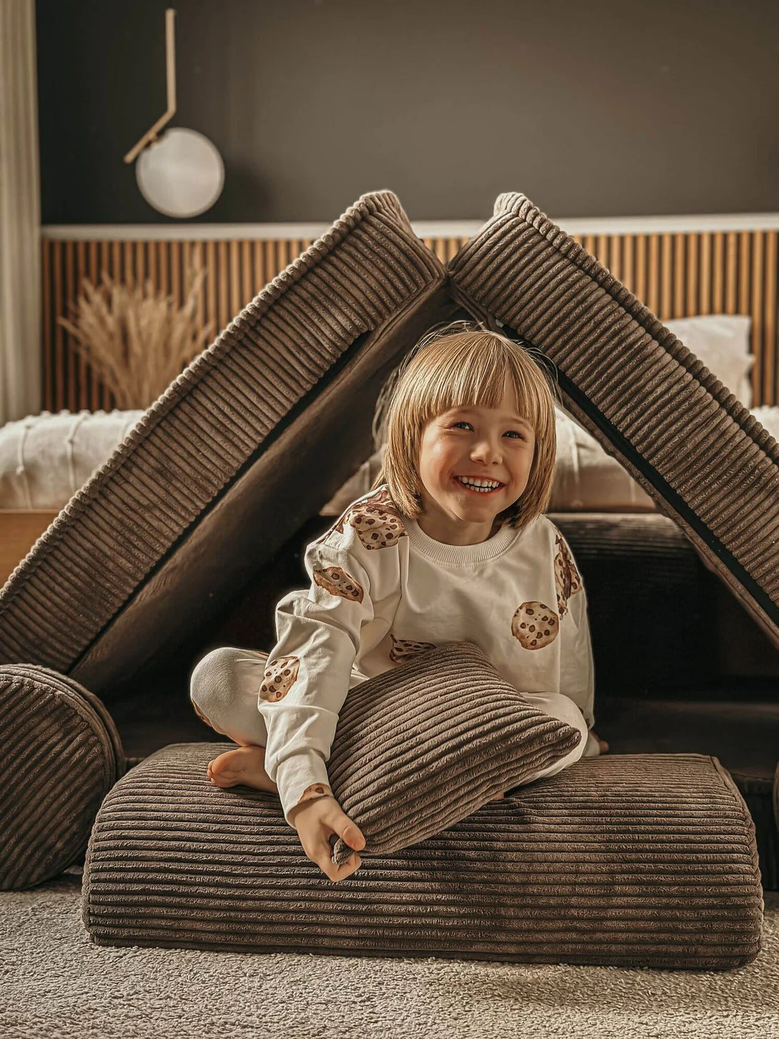 Avec ses modules aux formes variées et rembourrés en mousse, le canapé de motricité est idéal pour créer chez soi une aire de jeu que nos enfants modifieront au gré de leurs envies.