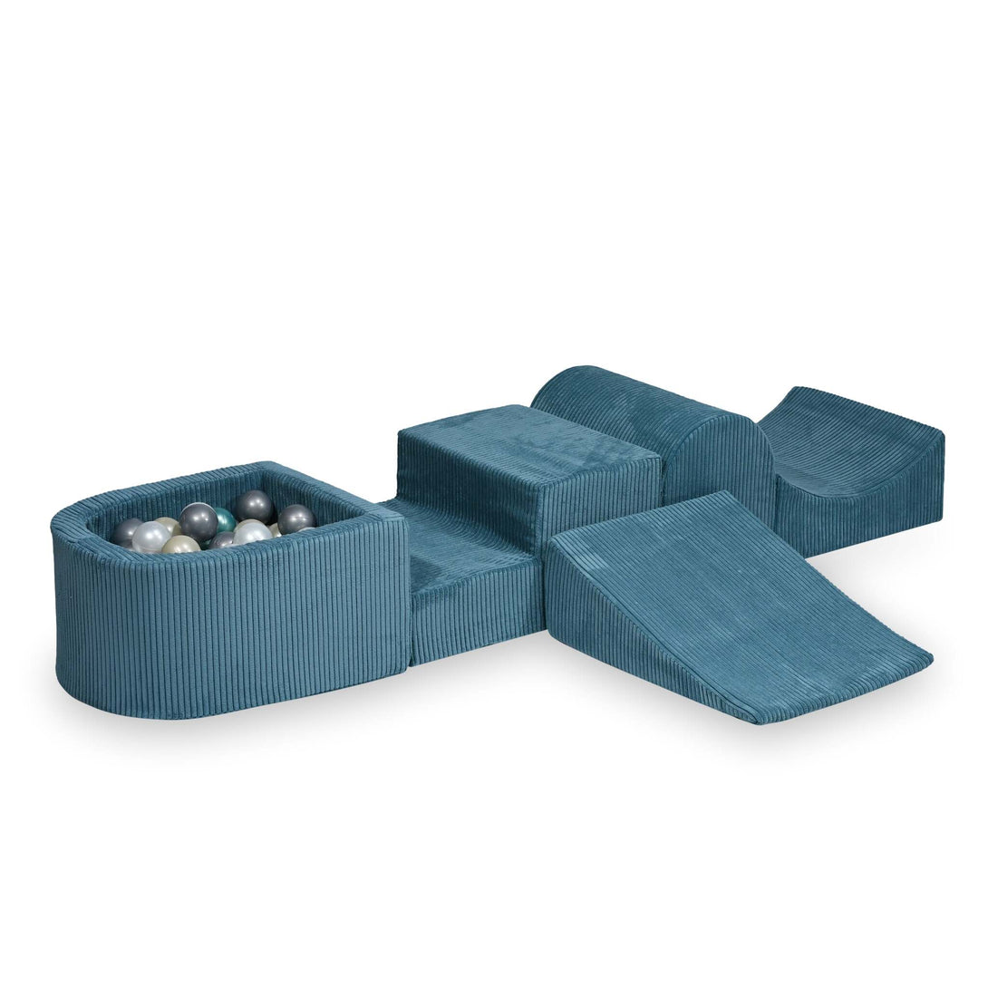 Parcours de motricité 4 pièces avec mini piscine à balles en Corduroy Tobias - Bleu | Balles au choix