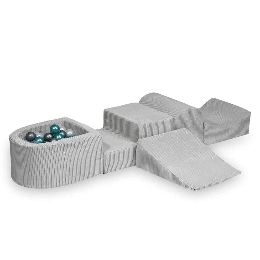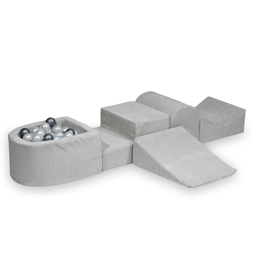 Parcours de motricité 4 pièces avec mini piscine à balles en Corduroy Tobias - Gris | Balles au choix