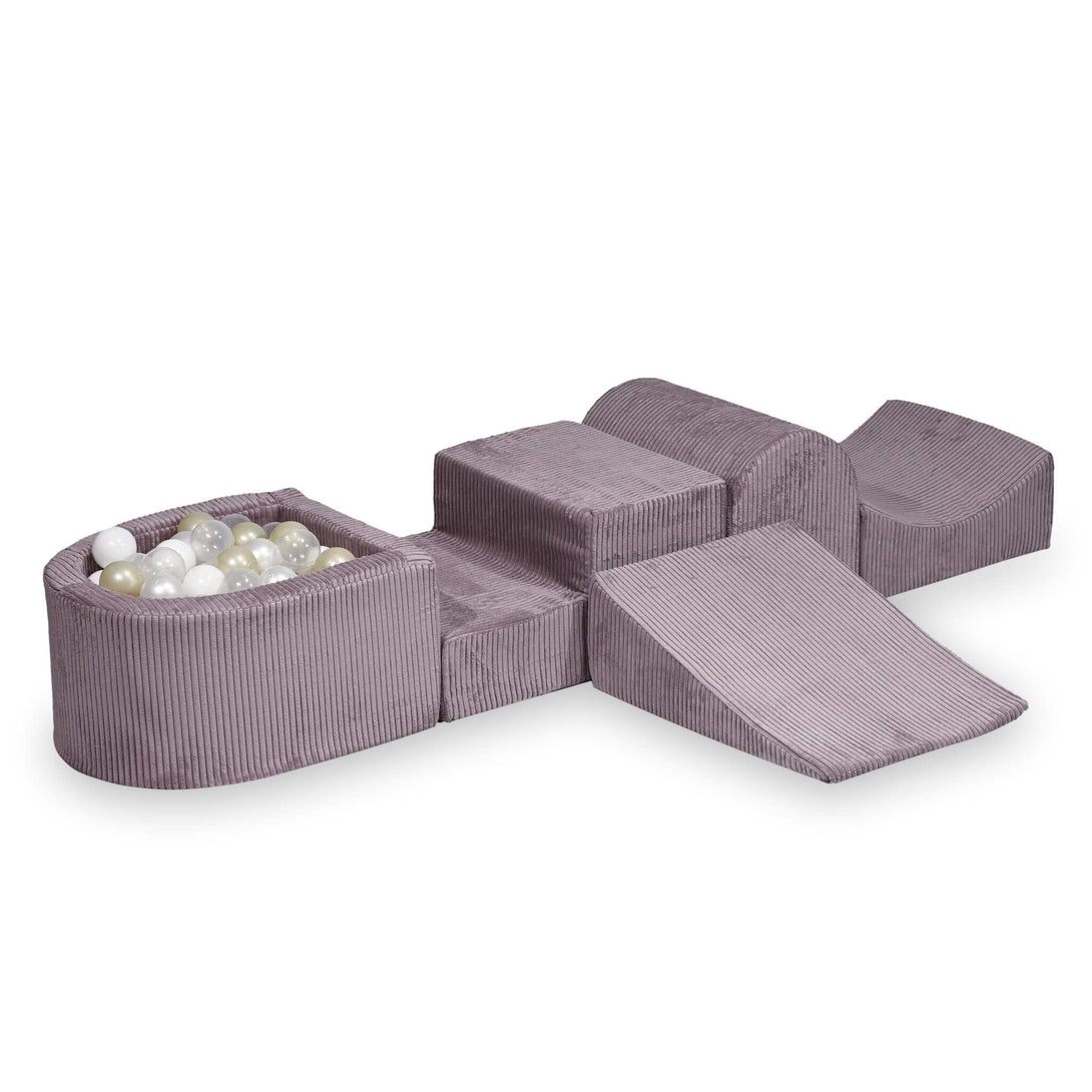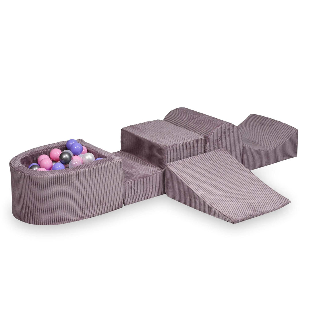 Parcours de motricité 4 pièces avec mini piscine à balles en Corduroy Tobias - Lavande | Balles au choix