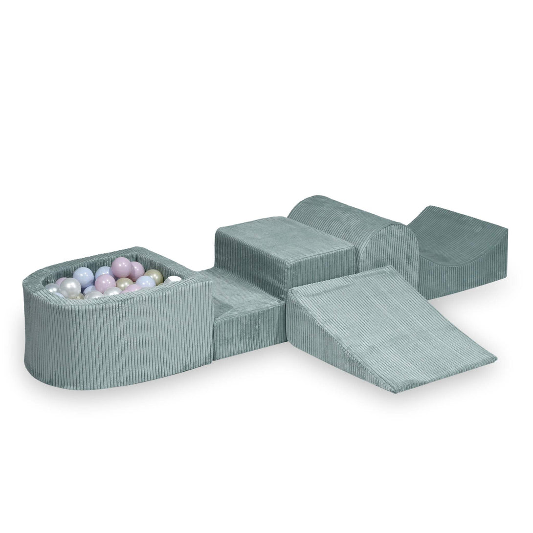 Parcours de motricité 4 pièces avec mini piscine à balles en Corduroy Tobias - Menthe | Balles au choix