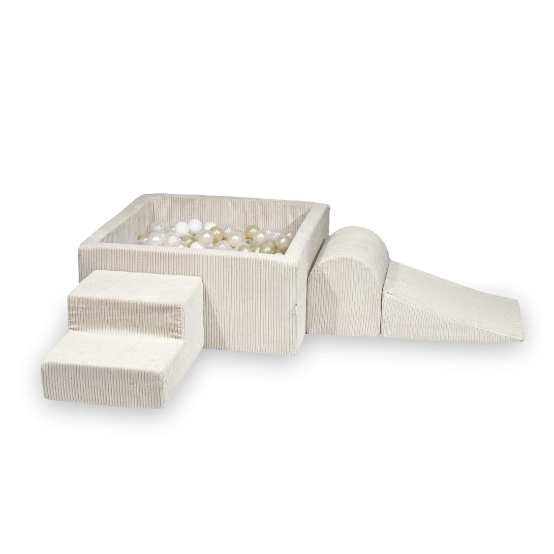 Parcours de motricité 3 pièces avec piscine à balles carrée en Corduroy Tobias - Beige | Balles au choix
