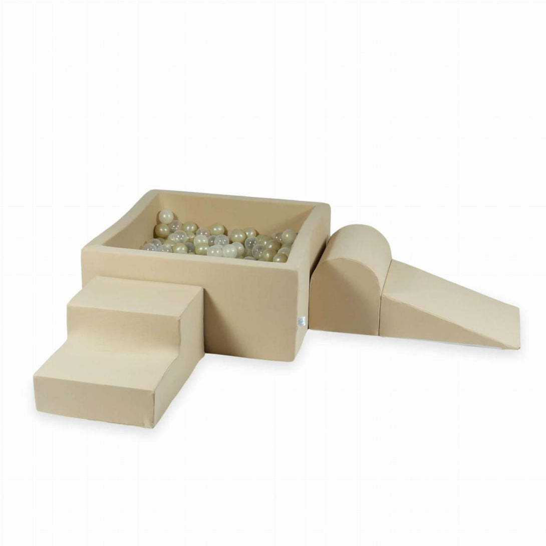 Parcours de motricité 3 pièces avec piscine à balles carrée en jersey - Beige | Balles au choix